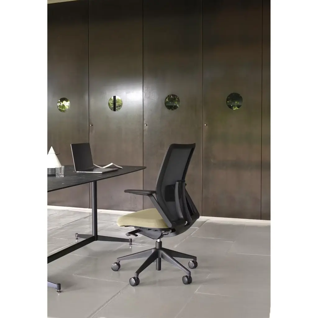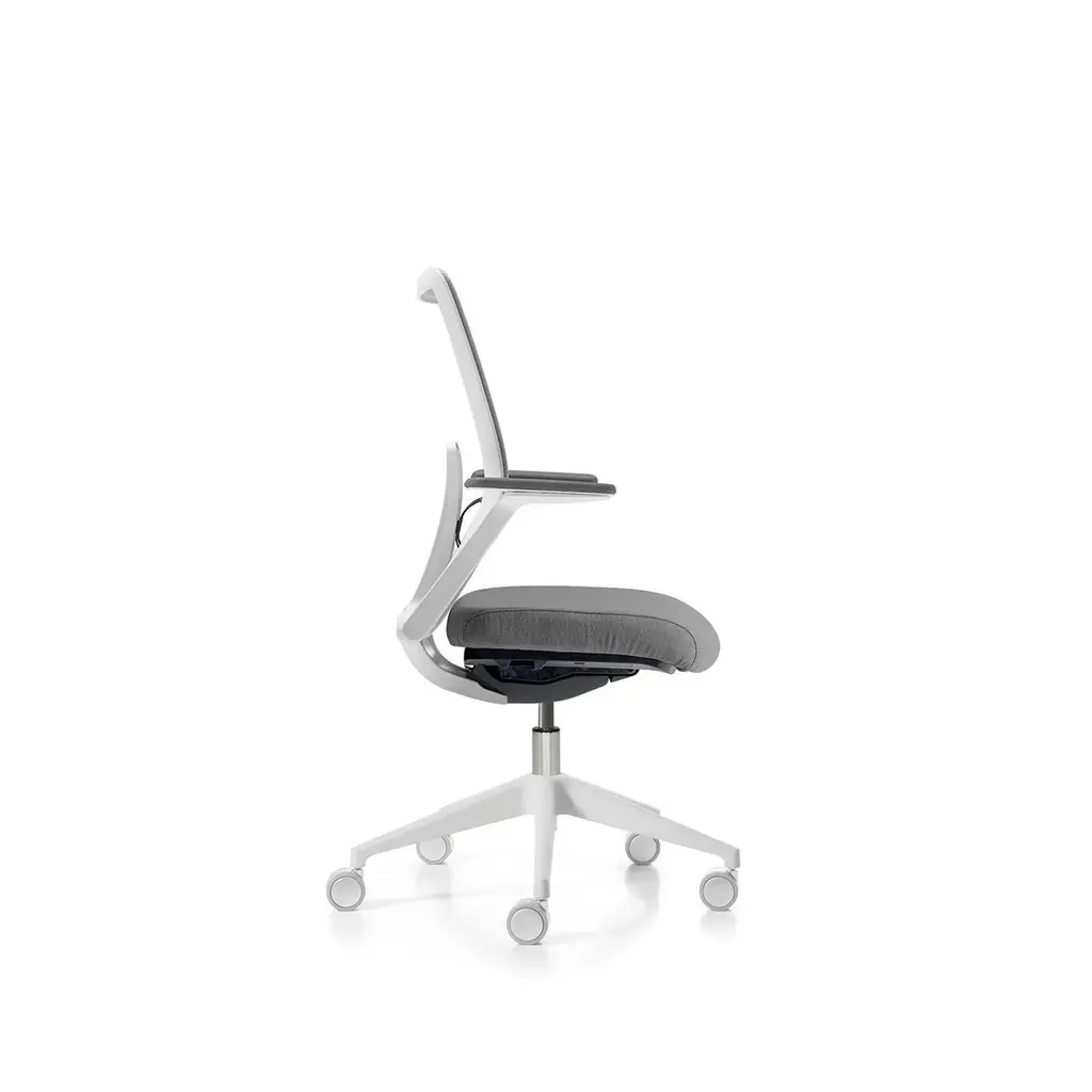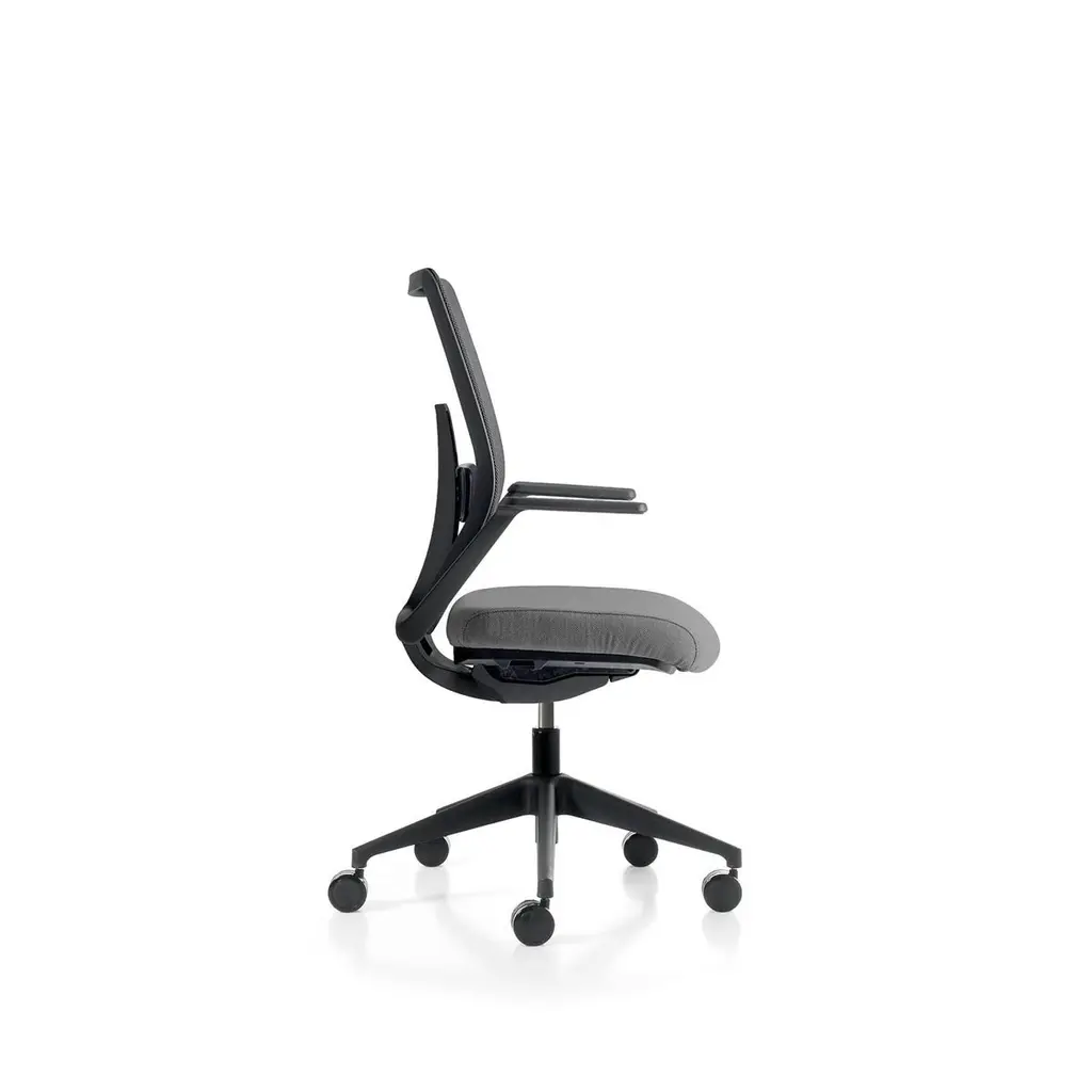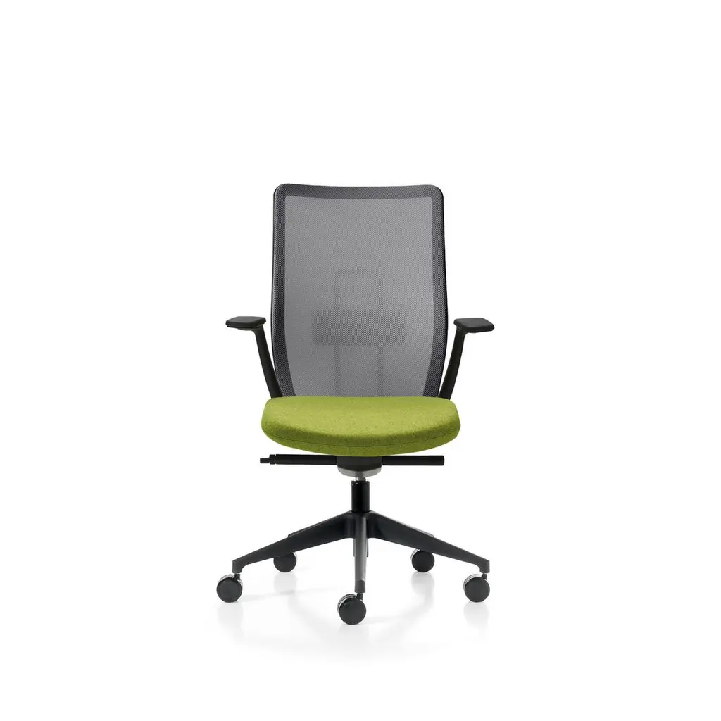 Chance Plastic Net Armchair In Mesh & Upholstery by Quinti SeduteDimensions: D 68 x W 68 x H 113 cm.Materials: Polypropylene, upholstery, and mesh.Available in different finishes, sizes, and material options. Dimensions and prices may vary. Please contact us.Characterised by its soft shapes and mesh backrest, Chance Net can accompany and support operators of any stature by providing them with the highest standards for ergonomics and comfort.1993 is a turning point in the company's history: the arrival of Mirko Quinti begins an unstoppable development process that still lasts nowadays.Now Quinti produces office and home furniture such as executive and operative chairs, tables, upholstered armchairs, and sofas.Over the years, all the processes have been internalized, and the collaboration with famous designers has made the products internationally recognized. Above all, the Company organized itself with a young and competent staff, able to face every challenge with enthusiasm.Creating a new product means following every single moment with care and attention. We combine the search for original shapes with the desire to create practical and functional products. To the value of tradition and of well-done things, that represents our starting point, we add a marked sensitivity for the search for materials, for the combinations able to surprise, and for the care of details that make each product unique and personal.We apply all our experience to actively promote the protection of the environment, taking into account, already at the initial stage of product creation and development, all the variables so that they weigh as little as possible on environmental resources. The 75 kW photovoltaic system allows the complete autonomy of the two plants, guaranteeing maximum energy efficiency.