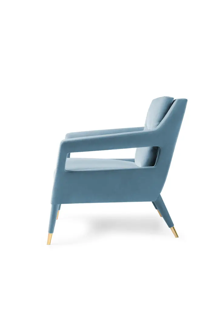 Chantal Armchair by MunnaDimensions: D 88 x W 78 x H 85 cm. SH: 46 cm.Materials: Wood, foam, brass, and upholstery.Finish: Cotton Velvet and polished brass.Available in all Munna fabrics except Wild Silk. Available in client’s ownmaterial. Available upholstered, Rosewood or Ebony veneer, solid Walnut, Wengé stain, or lacquer in all RAL colors, in matt or gloss. Fire retardant interlining is available on request. Handmade in Porto. Please contact us.Established in Porto in 2008, Munna is a furniture design brand renowned for creating handmade upholstery with unmatched craftsmanship, seamlessly blending noble materials and timeless design, for both commercial and residential projects.Made by hand in Porto, Munna’s pieces honor the profound heritage of craftsmanship, while drawing inspiration from history’s most influential artistic periods. Munna’s pieces are made of the finest fabrics such as cotton velvet, twill, leather, and silk; the finest wood veneers, such as ebony, walnut, and rosewood; sumptuous gold, silver, and copper leaves, metal details in brass, nickel, and copper, and superior lacquers.