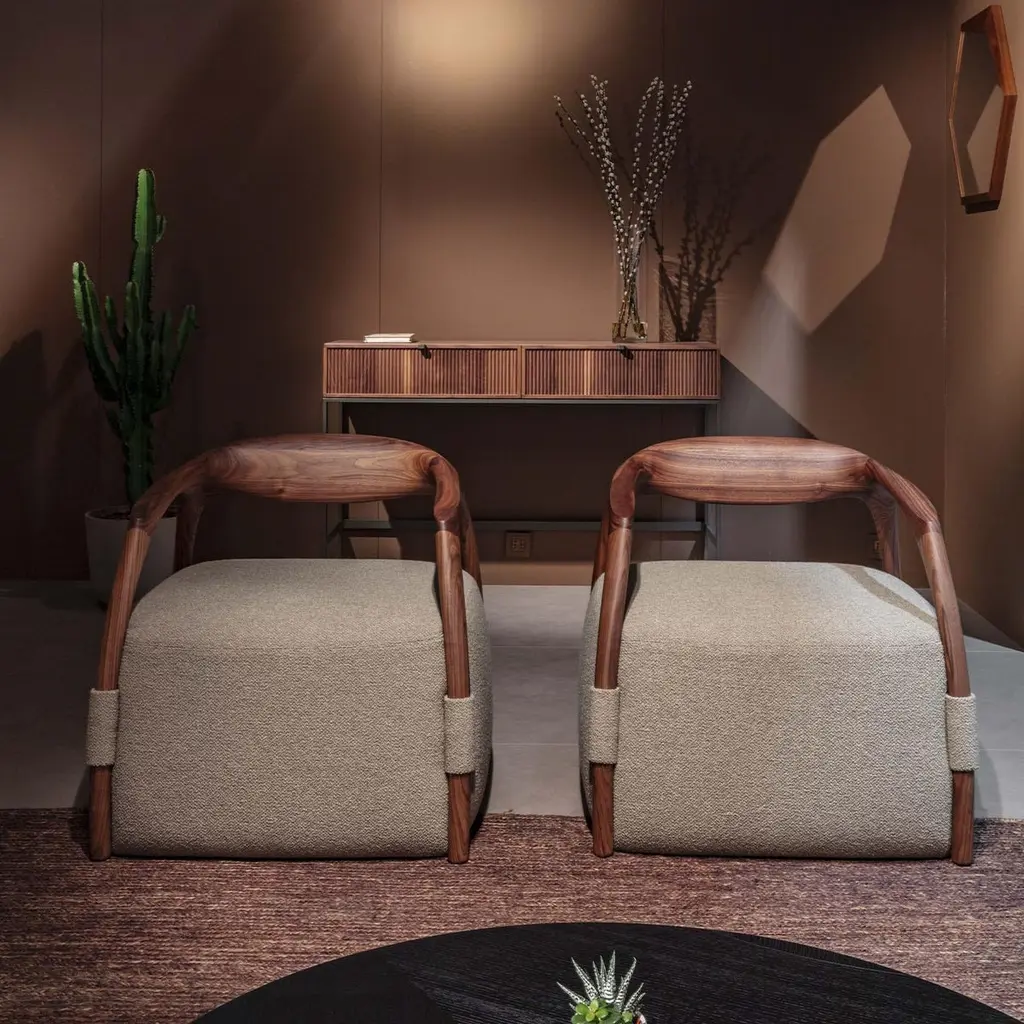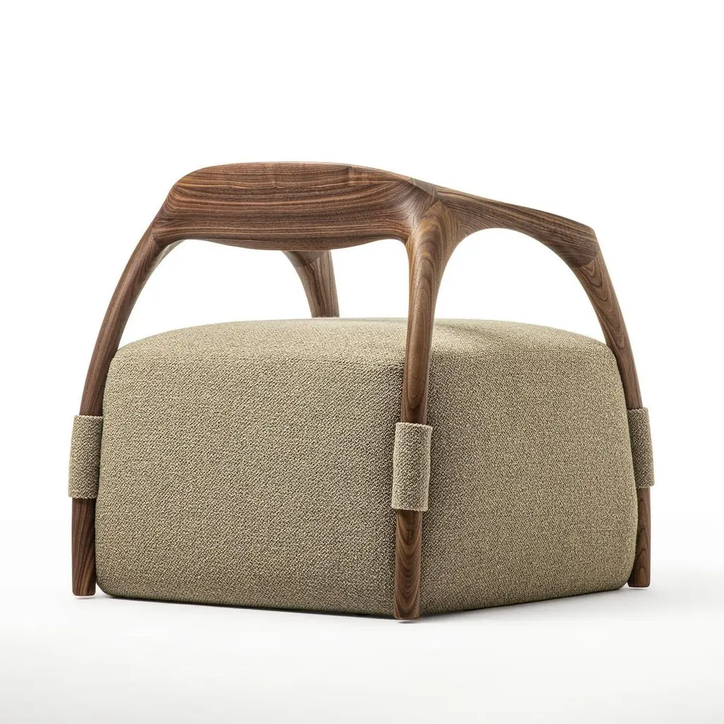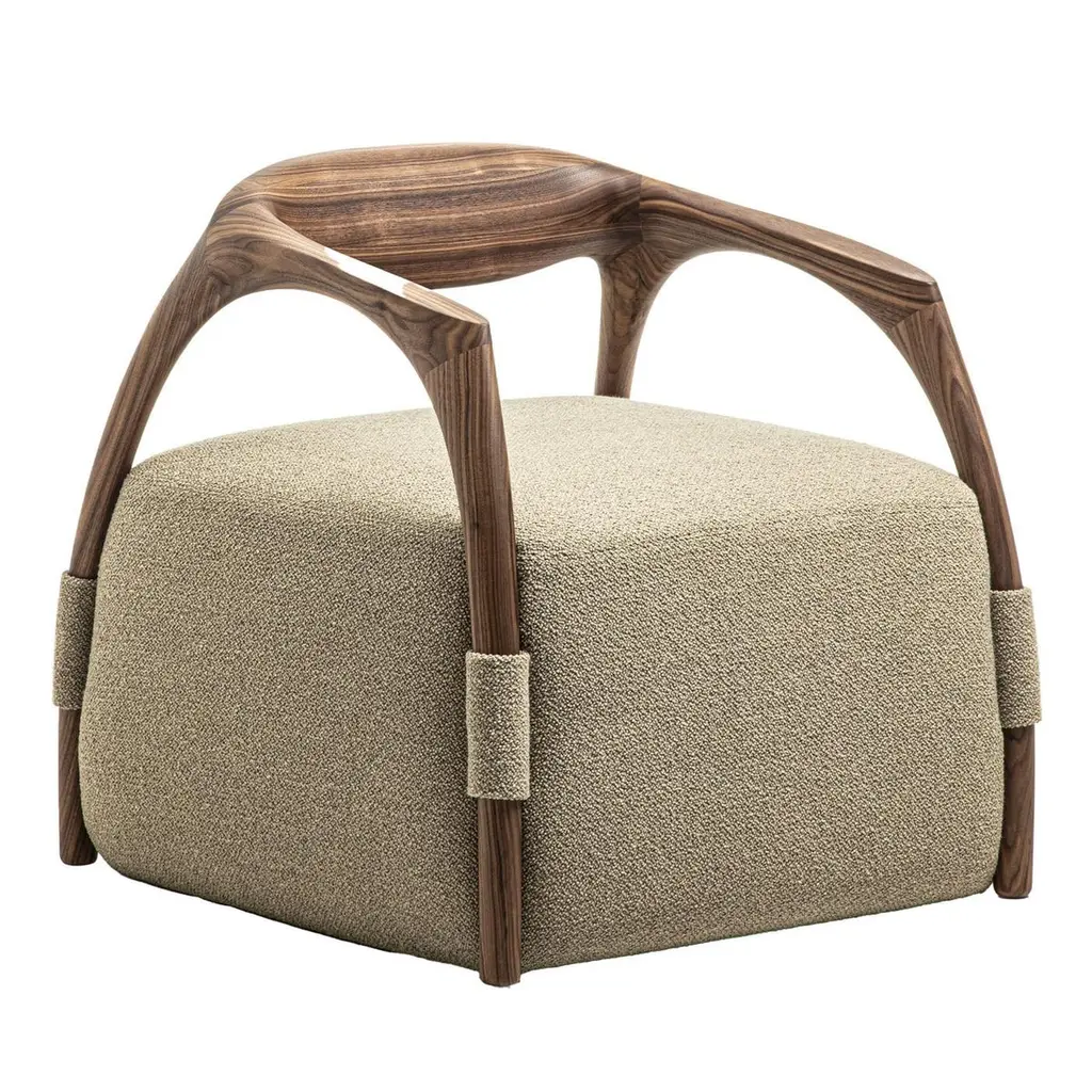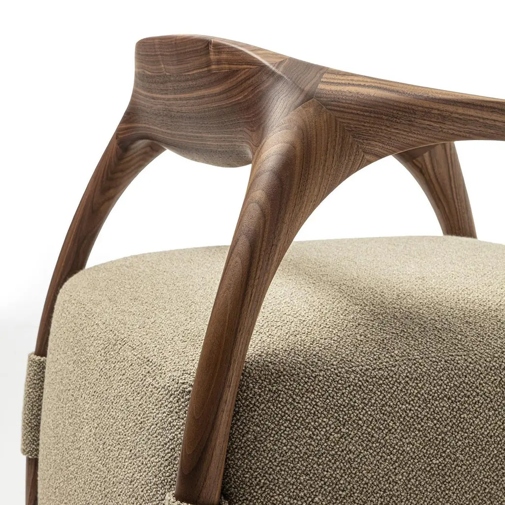 Chassis Canaletto Walnut Solid Wood Armchair & Fabric Upholstery By Durame