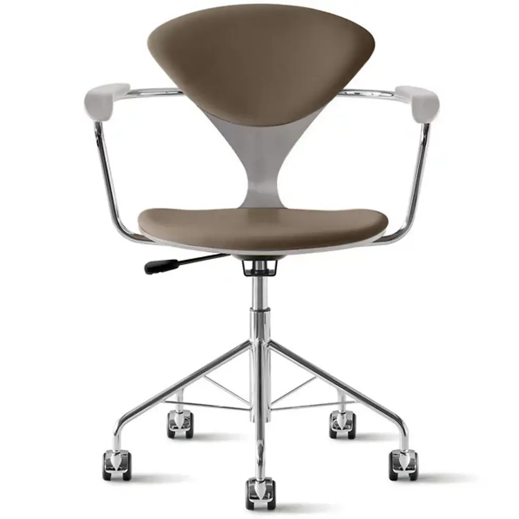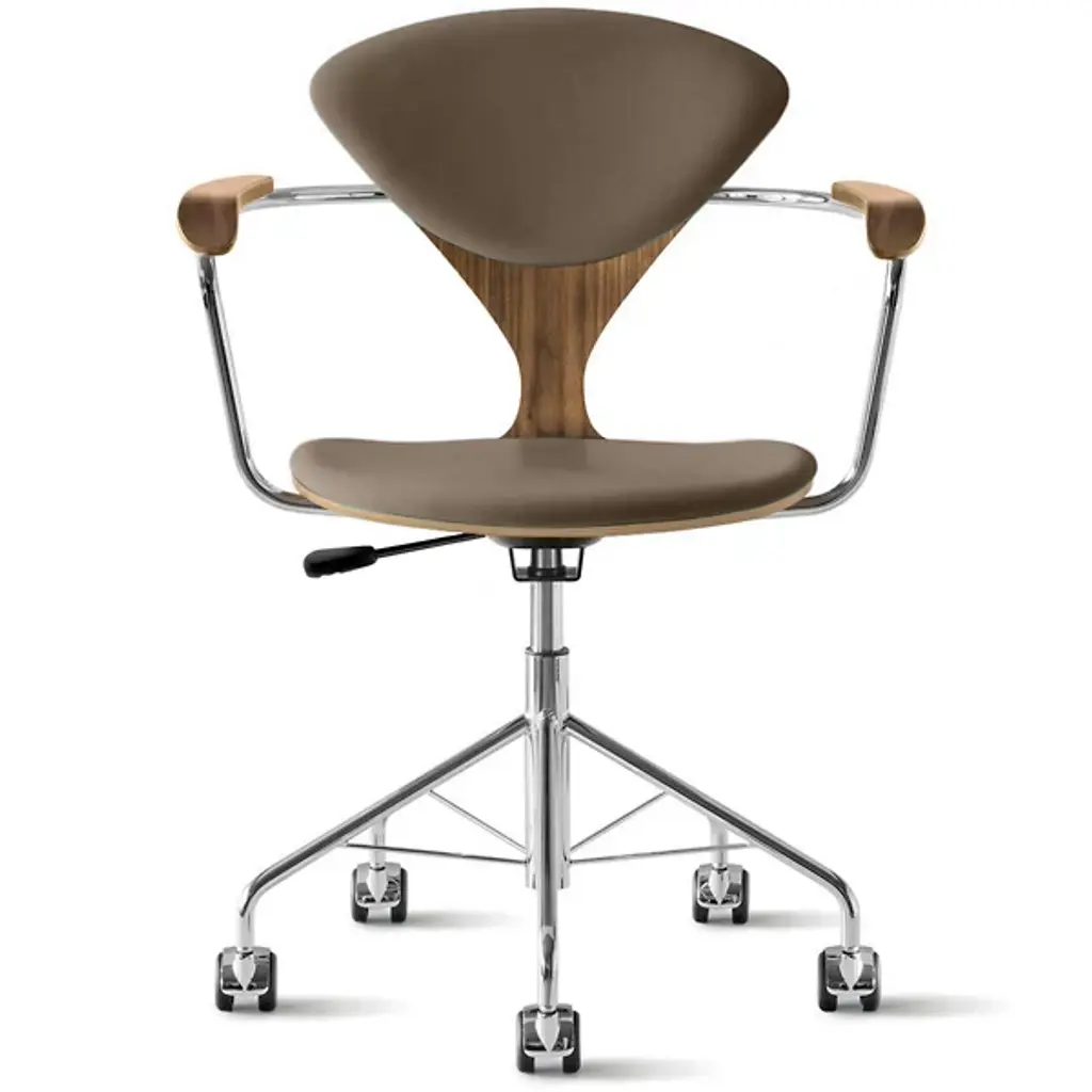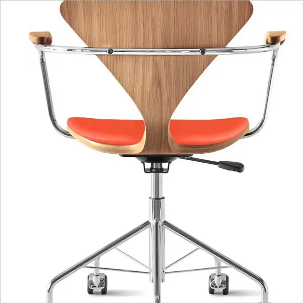 Grace and grandeur go hand in hand, adding zest to typical working spaces. Modern-day furniture with a classic design, the Cherner Task Armchair with Seat Pad by Cherner Chair Company stands the test of time. The contemporary chair is remodeled precisely from the original Normal Cherner chair model of 1958. This task chair comprises of both molded plywood and solid bent wood for extra durability. The strong steel base and lightweight plywood shell form the skeletal framework of this armchair, adorned with steel arms and wooden armrests.