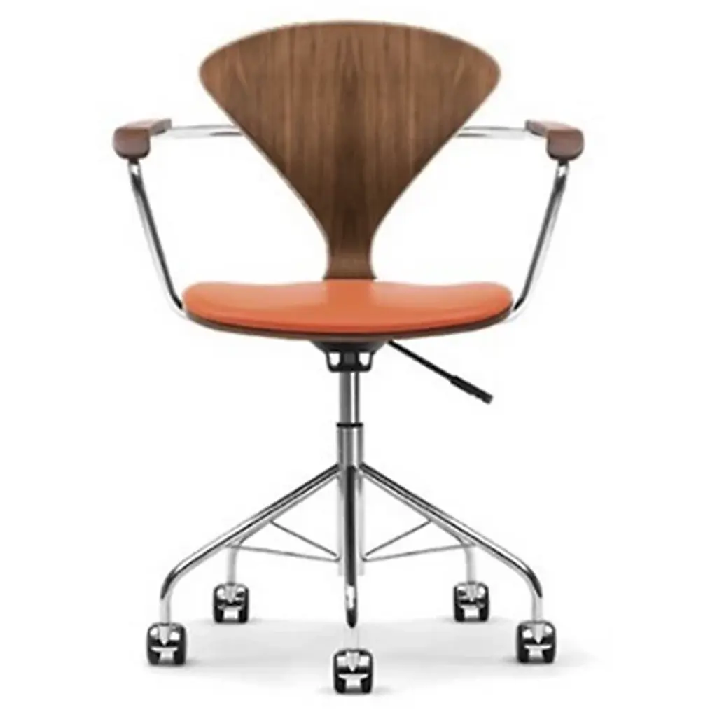 Grace and grandeur go hand in hand, adding zest to typical working spaces. Modern-day furniture with a classic design, the Cherner Task Armchair with Seat Pad by Cherner Chair Company stands the test of time. The contemporary chair is remodeled precisely from the original Normal Cherner chair model of 1958. This task chair comprises of both molded plywood and solid bent wood for extra durability. The strong steel base and lightweight plywood shell form the skeletal framework of this armchair, adorned with steel arms and wooden armrests.