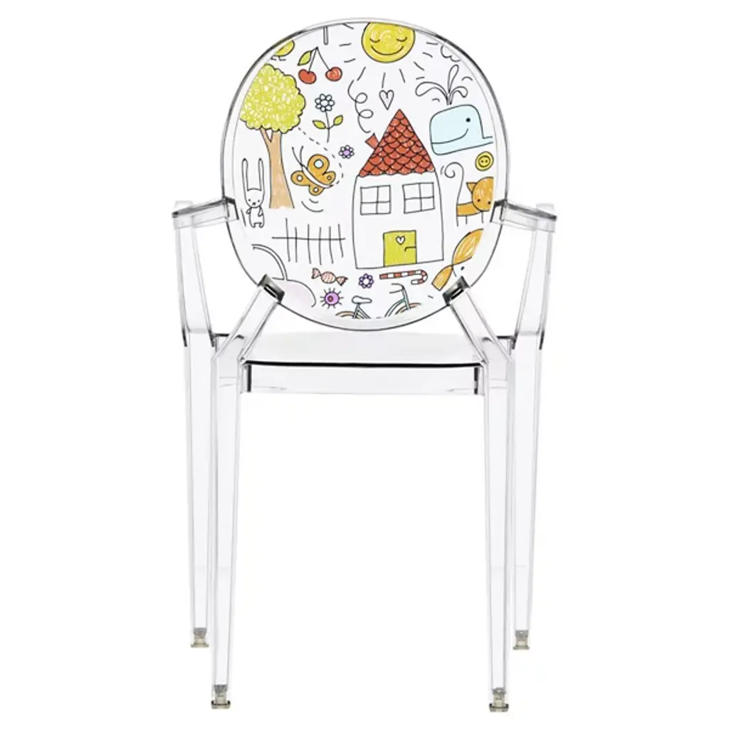 The Children's Lou Lou Ghost Armchair Limited Edition by Philippe Starck for Kartell is crafted to suit a young spirit. In a learning environment or playroom, the special edition armchair charms with a whimsical personality. The children's chair is lightweight and stackable for all your storage and mobility needs.