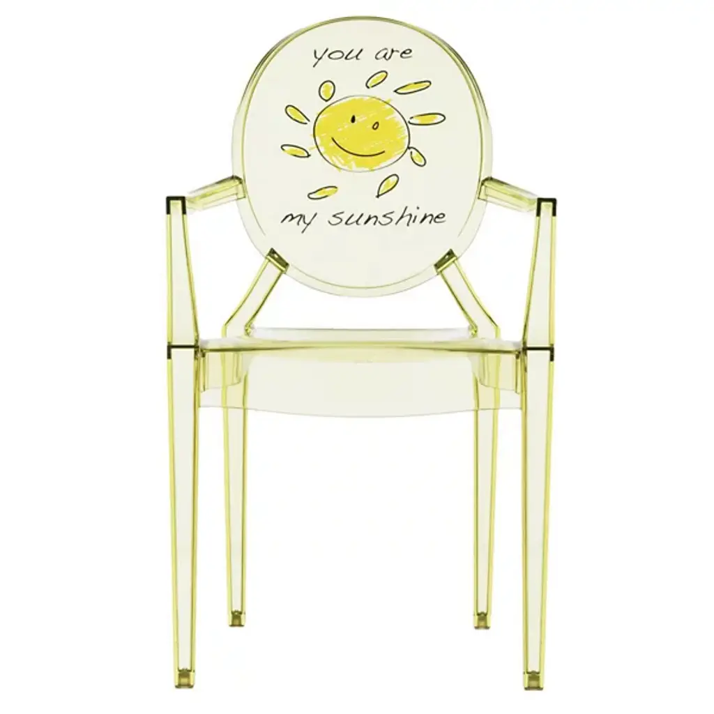 The Children's Lou Lou Ghost Armchair Limited Edition by Philippe Starck for Kartell is crafted to suit a young spirit. In a learning environment or playroom, the special edition armchair charms with a whimsical personality. The children's chair is lightweight and stackable for all your storage and mobility needs.