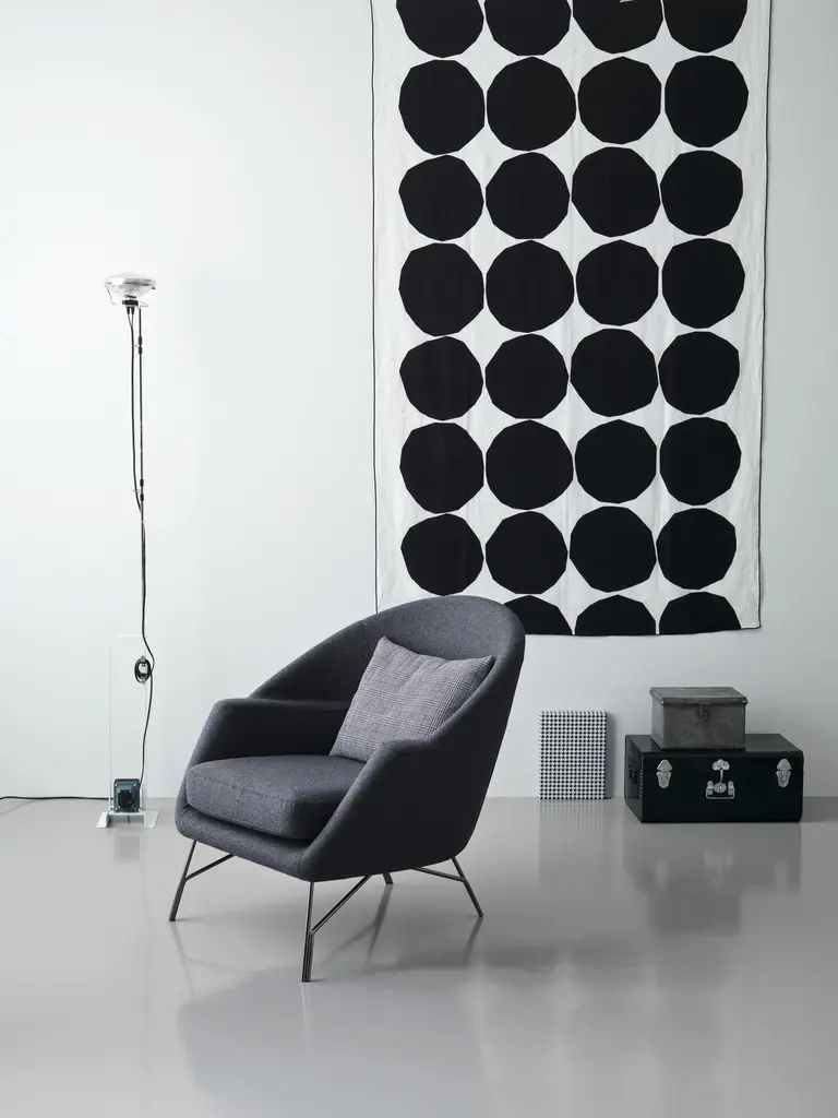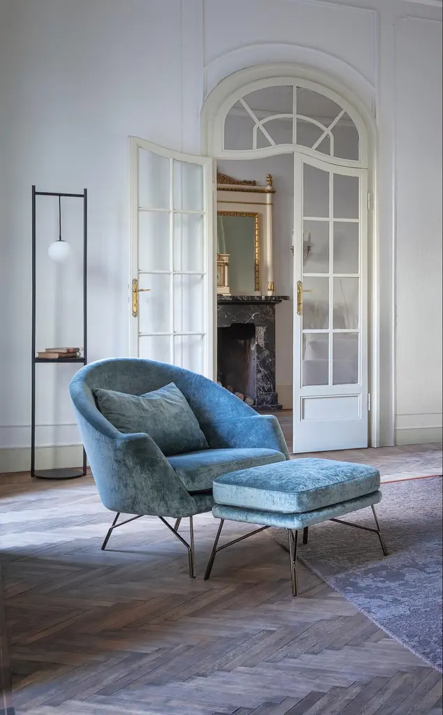 As soothing as background music, Chillout explores the new design trend that recreates old classics with a modern twist. Designed by Giuseppe Viganò, this piece of furniture draws its inspiration from a laid-back living area, whilst its slinky shape harks back to the ‘50s. Sharp tailoring details and an original armrest give Chillout a balanced appeal and make for a highly comfortable seat. Slender yet inviting with a sleek retro feel, it oozes the unique allure of handmade objects. From home interiors to contract projects, this is an all-purpose purchase which will fit perfectly into any surroundings. Fully removable covers.The designer Giuseppe Viganò is dedicated to the industrial design of furniture products and to the artistic direction of companies in the sector. He also provides graphic consulting for the production of catalogues, getting directly involved in the photography, page layout, communication and advertising pages. He designs trade fair layouts and permanent furniture shops or temporary areas for specific events and personally intervenes by indicating the choice of products and scenery design. In 2007 he started working with Saba Italia by endorsing several projects which embraced the whole company’s identity, he then became the artistic manager of the Company.Structure: In plywood with variable-density polyurethane foam (75IP and 40IP) covered with fine velvet coupled with resin 150gr/sqm.Feet: In 12 mm steel rod black nickel finish.Padding: The seat cushion is made with polyurethane foam core 50IM and memory foam covered with fine velvet coupled with resin 100gr/sqm. The lumbar cushion is made in white 100% cotton fabric and padded with washed and sterilized goose down.Additional information:Material: Wood, polyurethane foam, upholstery Upholstery: Special, Vegas Velvet - 18 A14 - col.63Dimensions: 84 W x 90 D x 87 H cmSeat height: 43 cmAvailable in other upholstery options: C, E, extra, lusso, vip, top, elite, royal, pelle club, pelle florida, pelle master