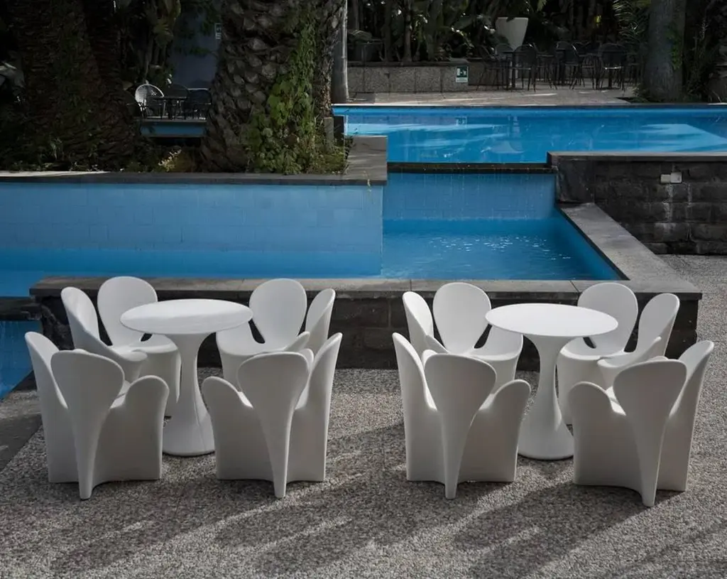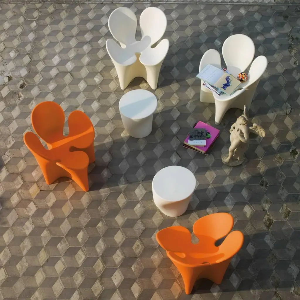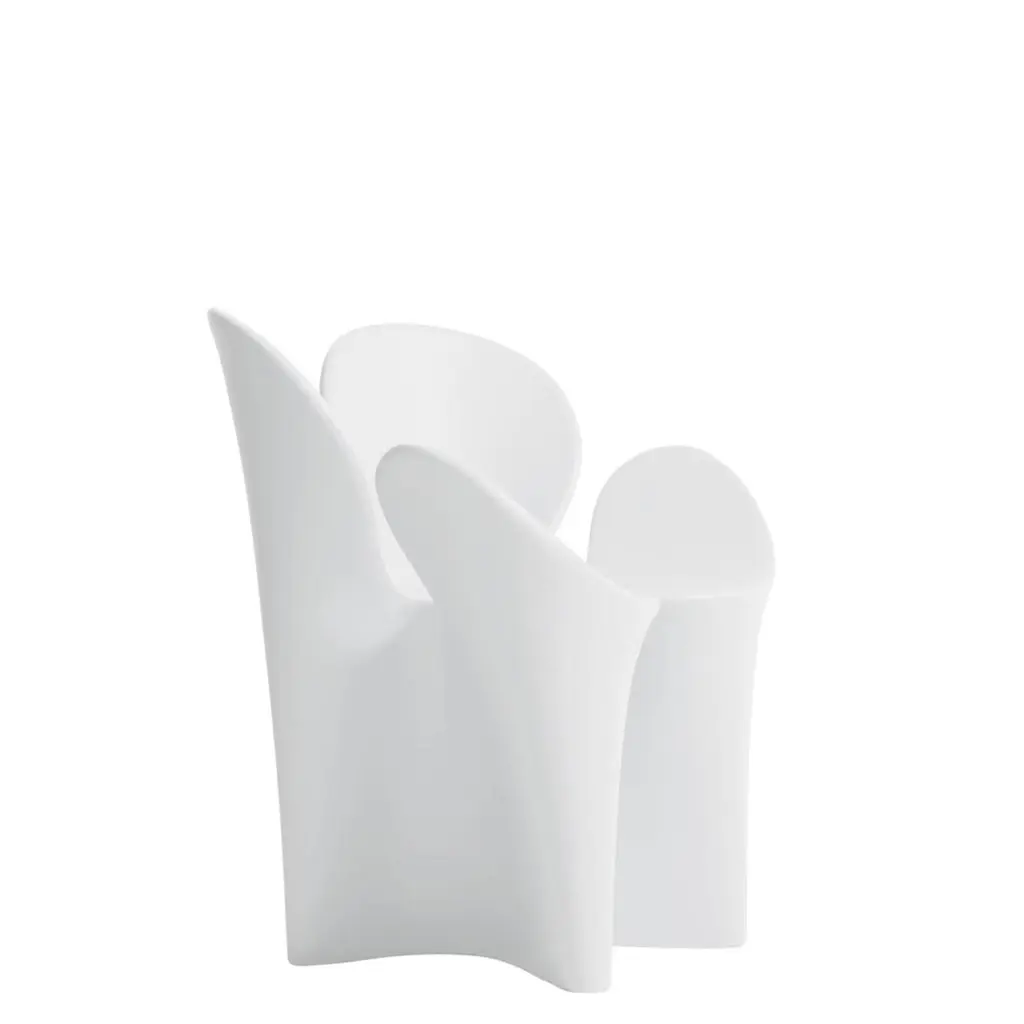 "Clover" is a white, orange or green polyethylene flower shaped monobloc armchair, designed by Ron Arad and manufactured by Driade.White version only is available in quick ship.Indoor and outdoor use. DIMENSIONS:D. 21.2", W. 26", H. 29.7", Seat H. 16.7"Can armchairs change into flowers? Flowers of an unknown species, featuring four fleshy petals and strong roots. Abstract flowers, capable of enriching nature thanks to Ron Arad's creative talent.RON ARAD, born in Tel Aviv in 1951, educated at the Jerusalem Academy of Art and later at the Architectural Association in London, co-founded with Caroline Thorman the design and production studio One Off in 1981 and later, in 1989, Ron Arad Associates architecture and design practice. In 2008 Ron Arad Architects was established alongside Ron Arad Associates.From 1994 to 1999 he established the Ron Arad Studio, design and production unit in Como, Italy. He was Professor of Design Product at the Royal College of Art in London up until 2009. Ron Arad was awarded the 2011 London Design Week Medal for design excellence and became a Royal Academician of the Royal Academy of Arts in 2013.Ron Arad’s constant experimentation with the possibilities of materials such as steel, aluminum or polyamide and his radical re-conception of the form and structure of furniture has put him at the forefront of contemporary design and architecture.Alongside his limited edition studio work, Arad designs for many leading international companies including Kartell, Vitra, Moroso, Fiam, Driade, Alessi, Cappellini, Cassina, WMF and Magis among many others.