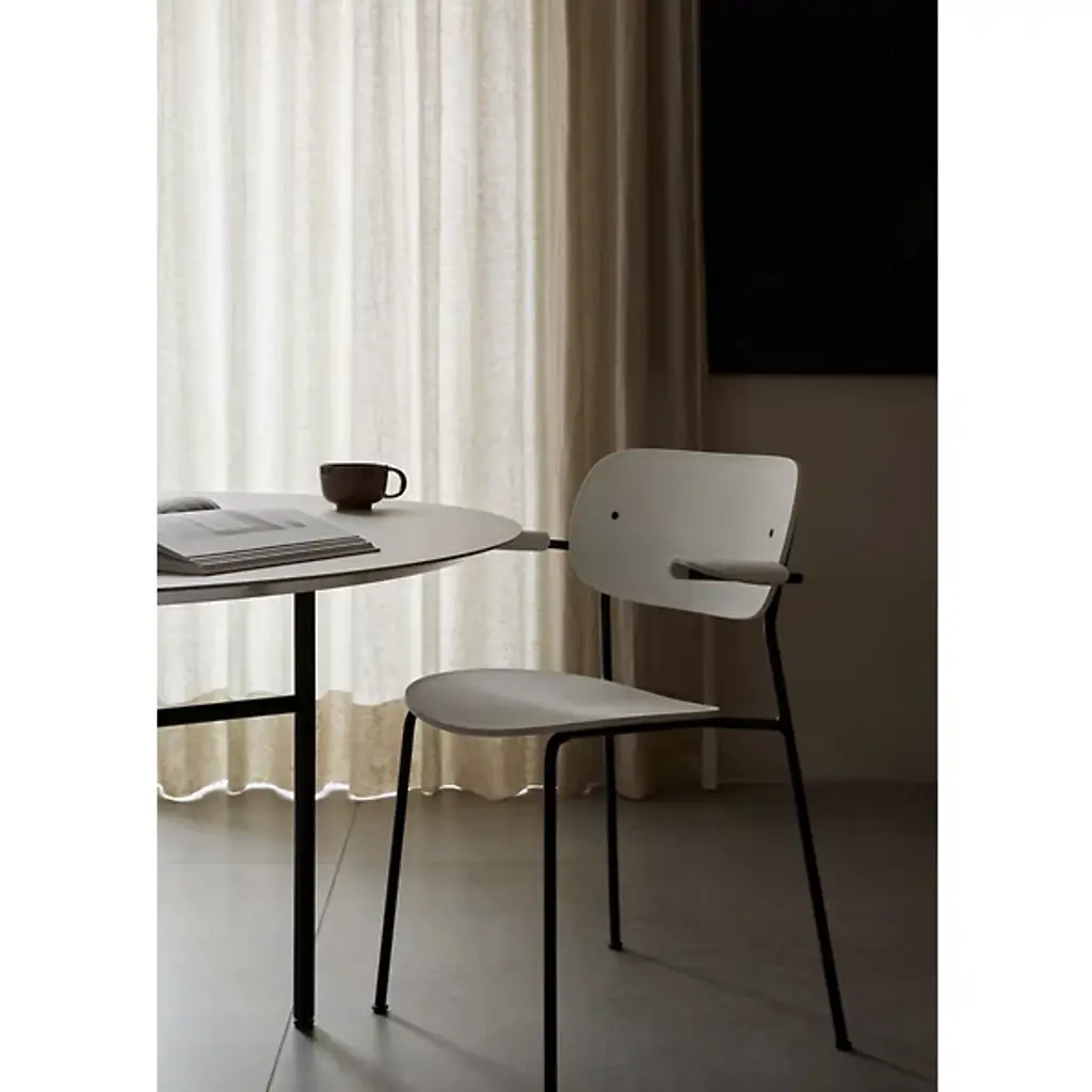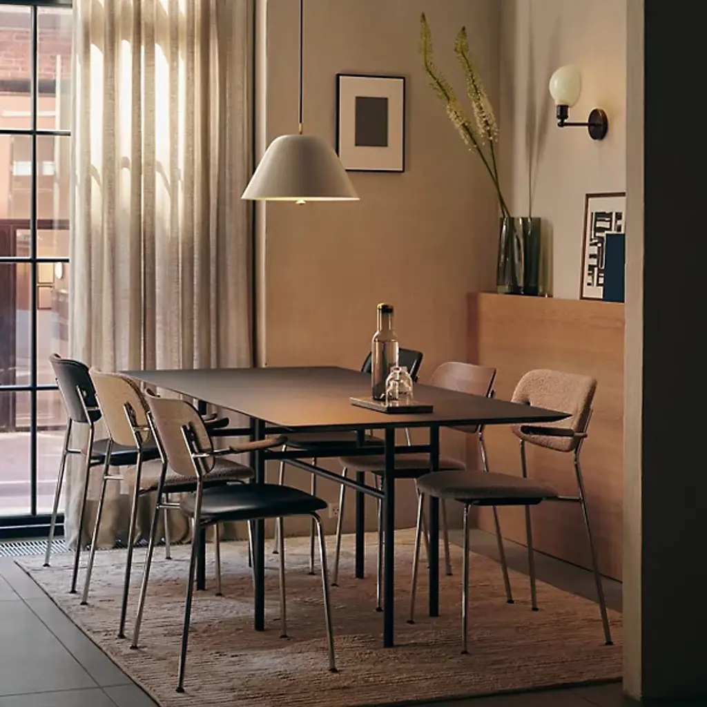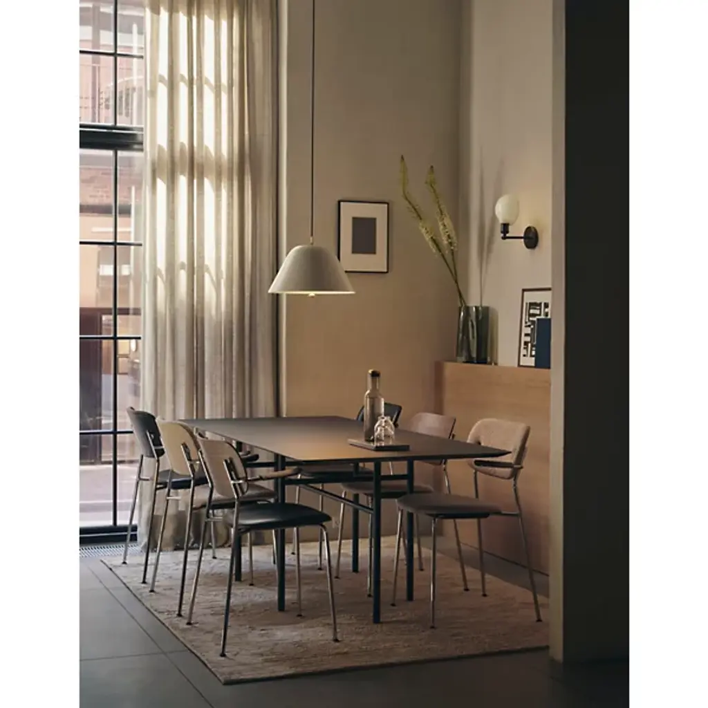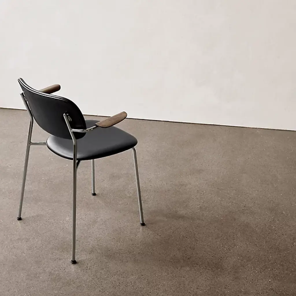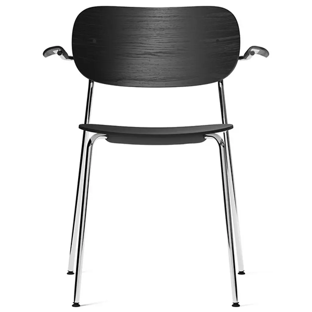 The Co Armchair, Non-Upholstered from Audo Copenhagen provides a smooth accompaniment to surroundings. Designed by Norm Architects and made with sustainably harvested wood elements, its open frame of chromed and welded steel offers strong and sturdy support with a welcome minimalist design language. The armchair is both strong and stackable, with a seat and back that each curve slightly inward, contrasted with outflung armrests, all made of pressed plywood with an engaging wood veneer exterior. The smooth surfaces of the metal contrast with the subtle woodgrain to add a welcome natural element to the otherwise direct design.