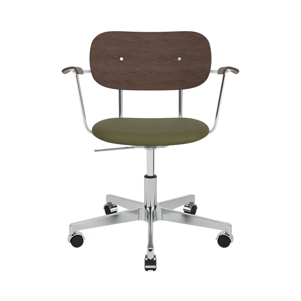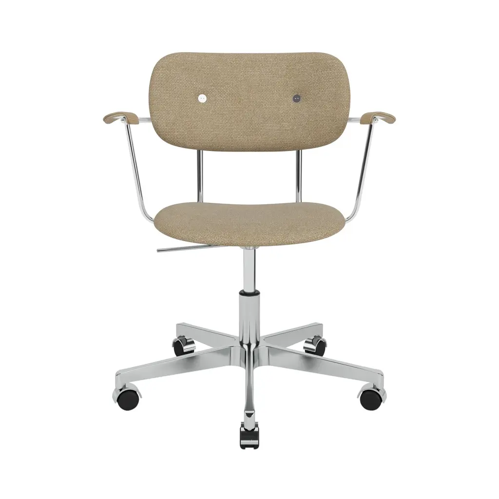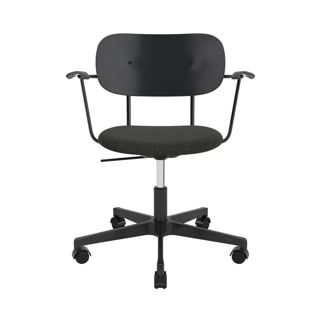 The Co Task Armchair with Casters is designed for comfort and practicality in work environments. Its upholstered seat and backrest ensure support during long periods of use, while the armrests provide added comfort. The chair includes a five-star swivel base with casters for easy mobility and a height-adjustable mechanism to suit different needs. A flex tilt function further allows for customized seating positions, making it a reliable choice for various tasks.