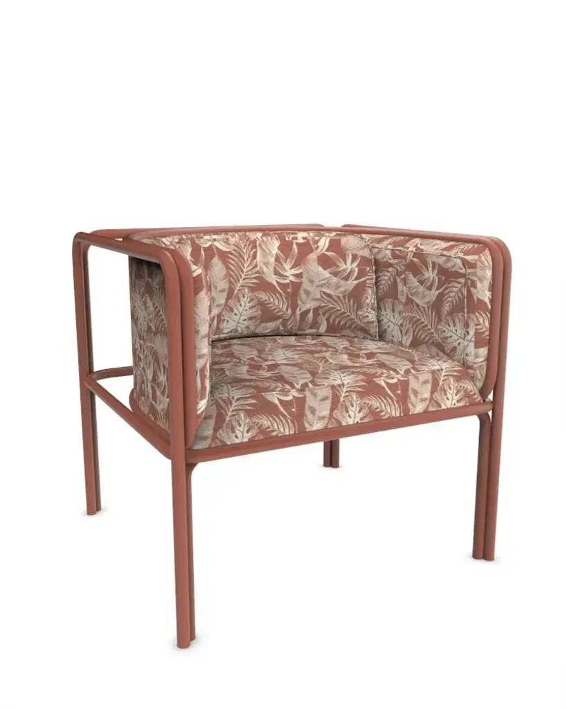 Collector Az1 Armchair Yucca Terracotta Fabric And Red Lacquered Metal By Francesco Zonca