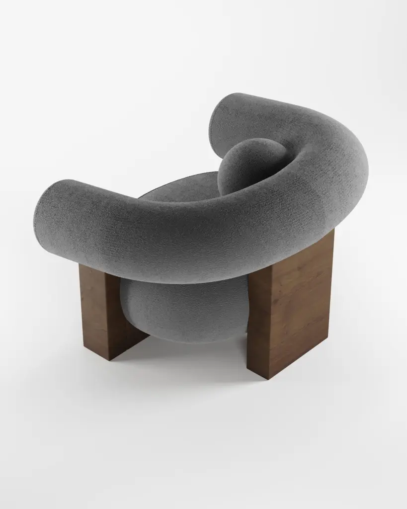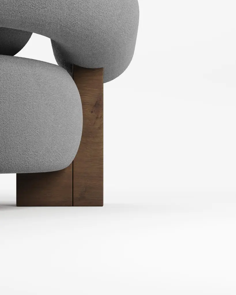 Collector Contemporary Modern Cassette Armchair In Boucle Charcoal Smoked Oak
