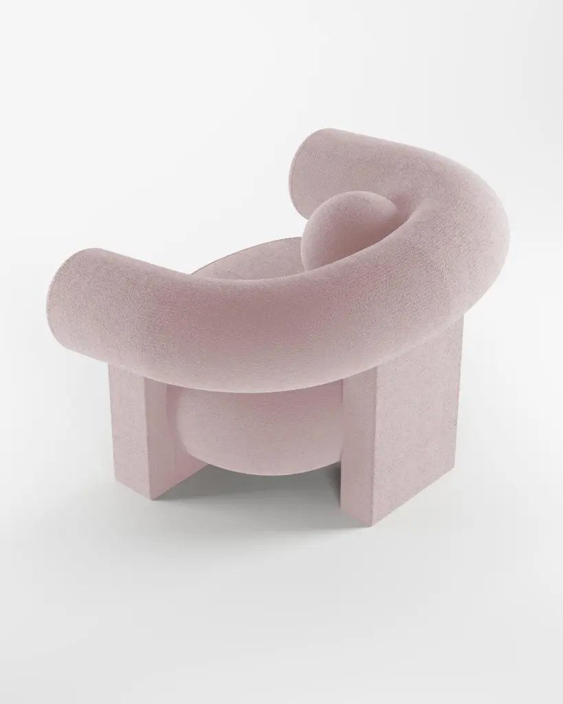 Collector Contemporary Modern Cassette Armchair In Bouclé Rose