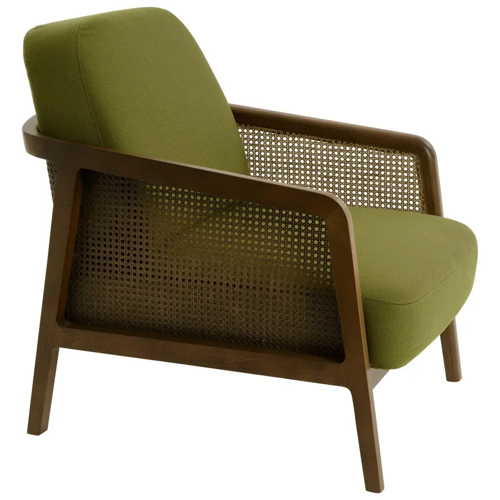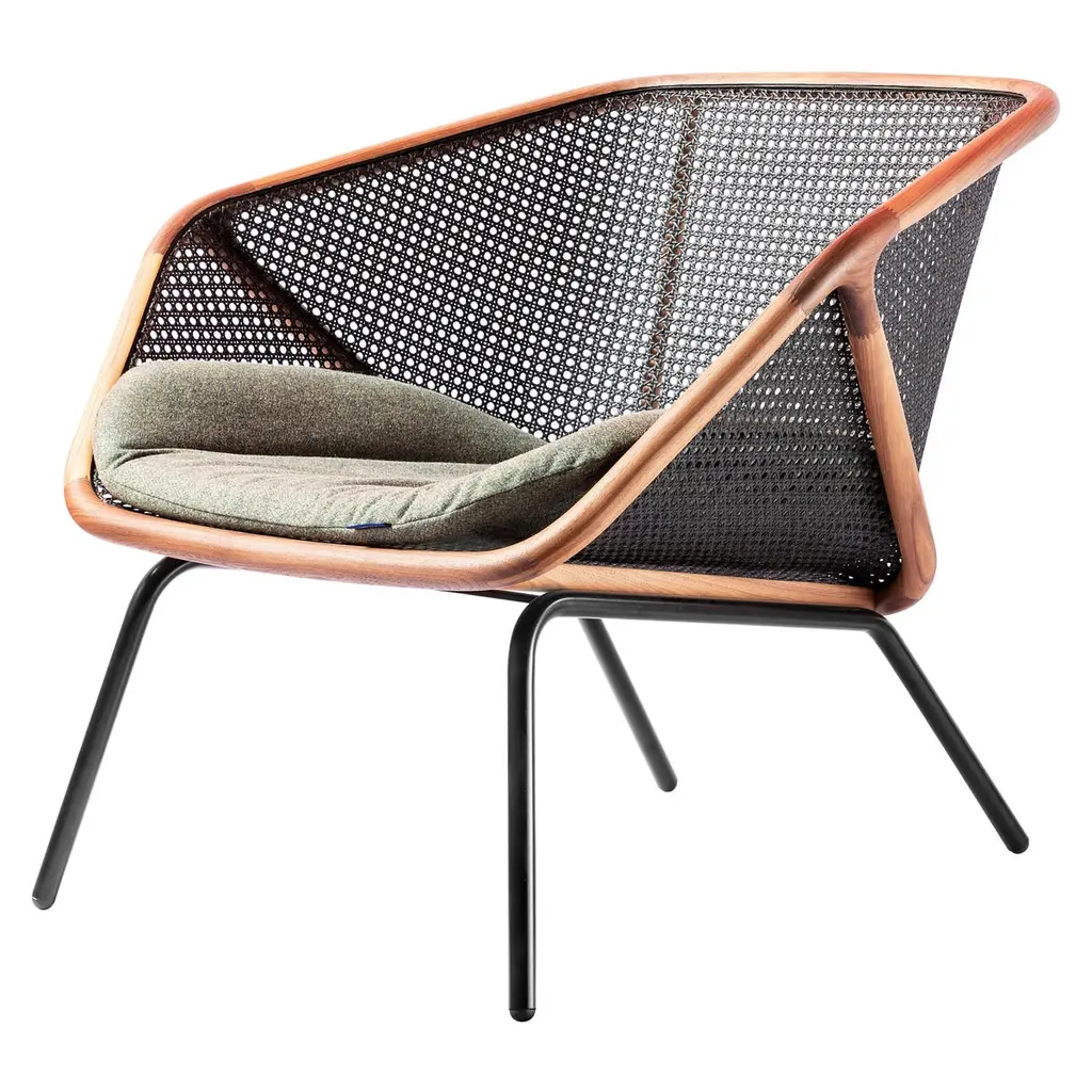 Colony Armchair In Black Legs, Walnut Structure, Upholstered Cushions, By Skrivo