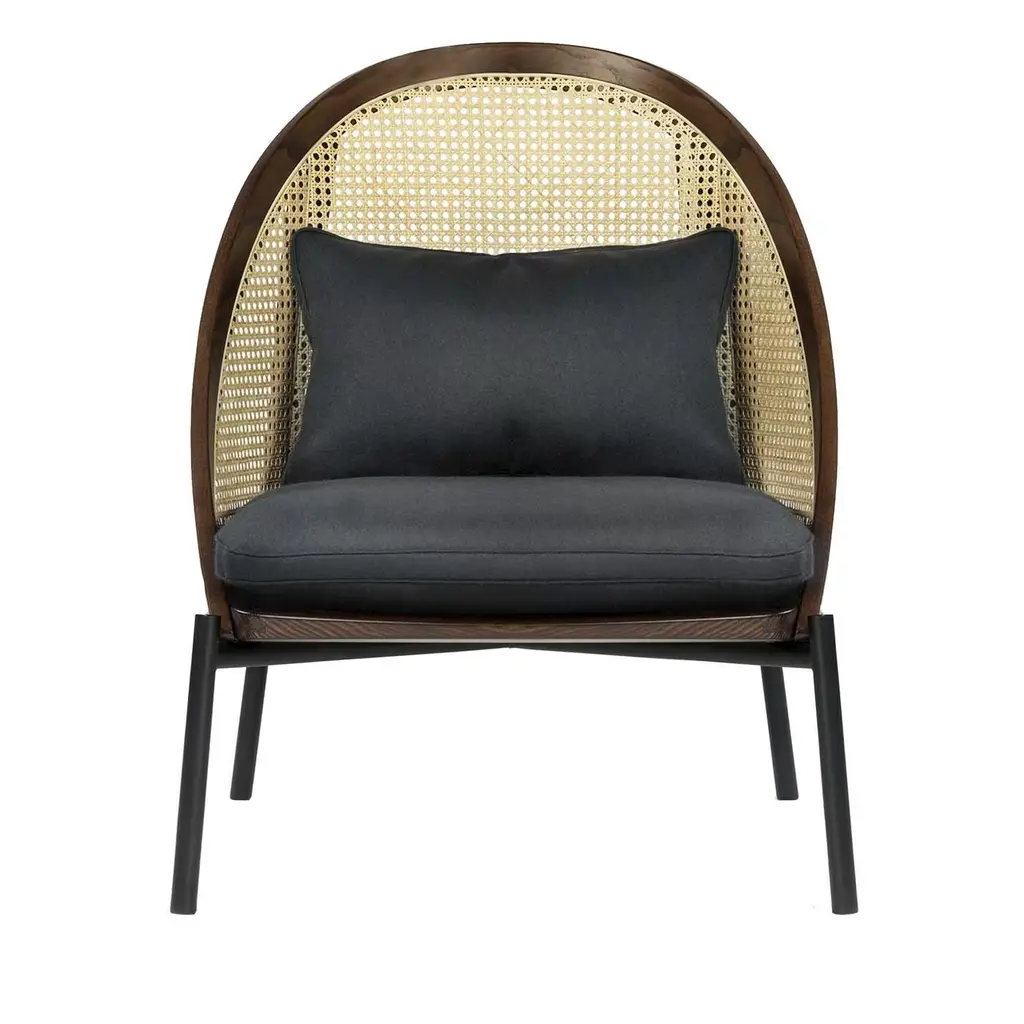 Colony armchair with metal base varnished is offered here in black, however, also available in white, silk grey, dusty grey, intense blue or bronze. The Structure is offered in natural beech, and available for custom orders in beech stained black aniline or in Canaletto walnut with shell in Vienna Straw. The Cushions are upholstered in the listed fabrics. Here you are shown the Colony armchair with black legs and a Canaletto walnut structure with upholstered seat cushions. If you are interested in the customizable options. Born in Croatia to an Irish mother and Montenegrin father, Stefan Krivokapic lives in Milan. Stafan has collaborated with several Italian design studios, working on projects ranging from packaging to furniture, lighting, electronics and exhibition stands for various Italian companies. In 2011, he founded the industrial design consultancy studio “Skrivo”, which specializes in industrial design for the furniture and lighting sectors, working with both Italian and European manufacturers. The projects always try to take into account the available production methods, and at the same time take special consideration of the materials used, through a constant search for new materials, to create innovative products that achieve a balance between function and aesthetics. Stefan's designs have been published in various design magazines in Europe and Asia. Stefan has also received a large number of prestigious awards, including: Elle Decor Croatia Best Furniture Designer (2010), New Office Designer Award (2009), Gold Award (Samsung Young Design Award 2007). Additional information:Dimensions: overall armchair height 71 cm, width of armchair 79 cm, depth of armchair 80 cm.Legs finishes available in: Black. Additional customizable leg finishes are white, silk gray, dusty gray, anthracite, and intense blue.Structure finishes: Available in Canaletto walnut. Additional customizable finishes are beech and black aniline. Prices may vary.VAT not included.