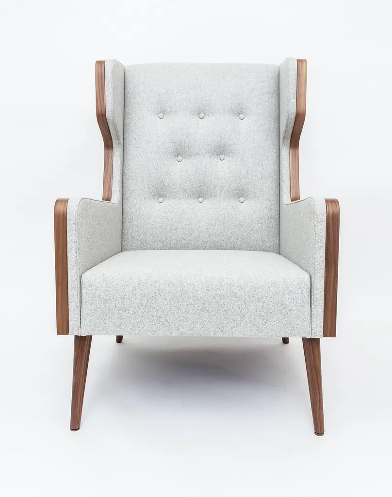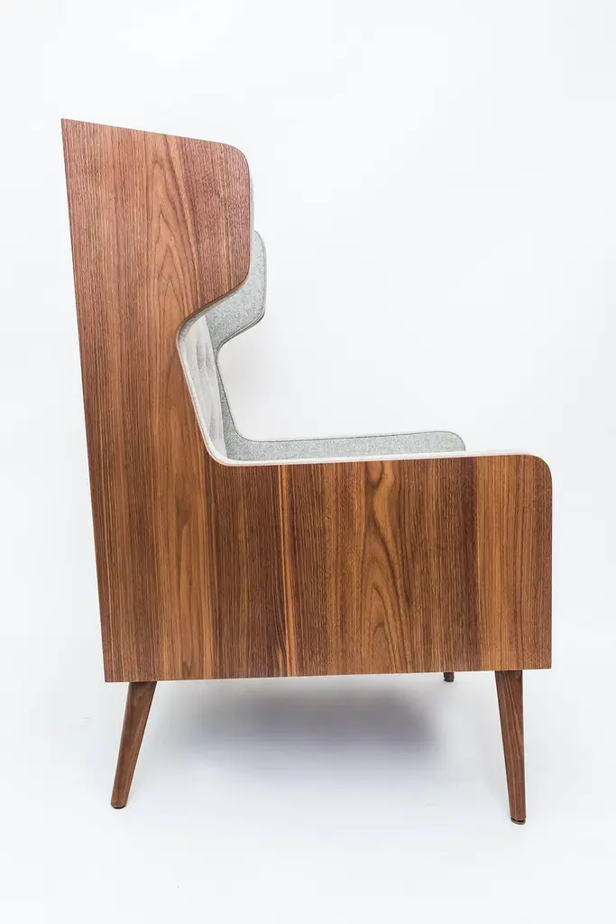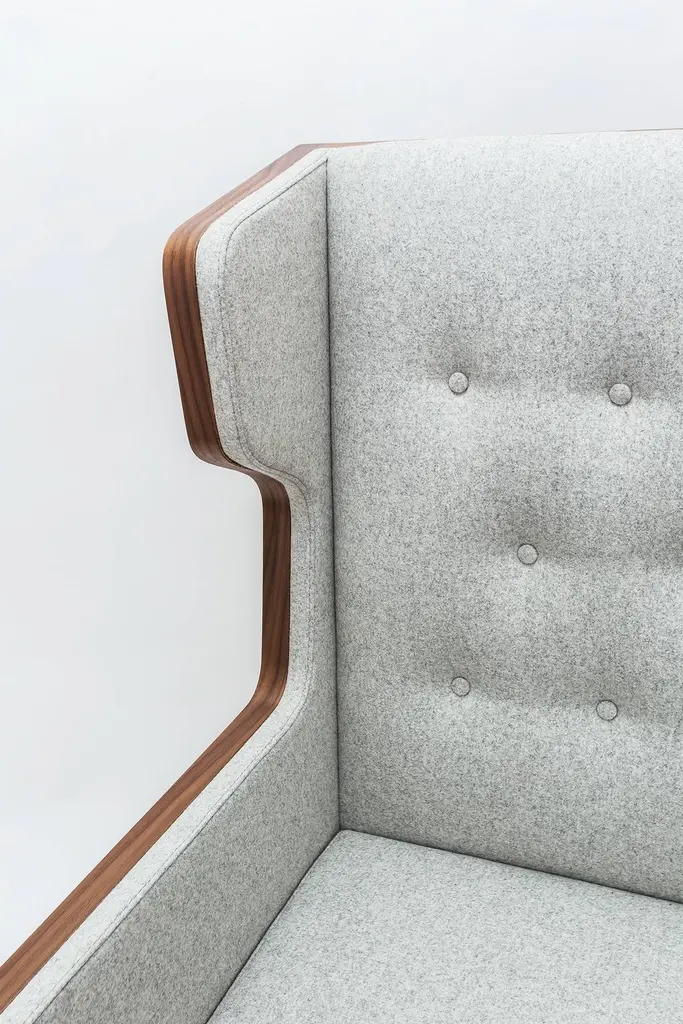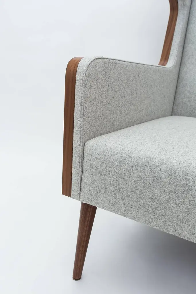 "FELT" is designed to bring a modern approach to nostalgic Art Deco armchairs. Combining the natural materials wood and felt, it creates a contrast between rough and smooth and brings a fresh feeling to its environment. The colors of the materials are carefully selected to harmonize with each other. "FELT" is an example of contemporary craftsmanship which is both simply elegant and ultra comfortable. Comes in different colors and wood veneers.