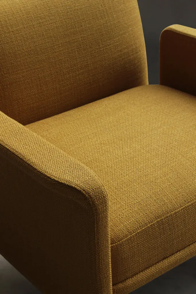Contemporary Carson Armchair in Oak & Yellow Fabric by Collector StudioWith solid and curved wooden armrests, this structure blends with a metal frame that adds character to the design. Alone or in pairs, covered in leather or fabric, is the perfect complement for any sofa.DIMENSIONSW 86 cm 33,8″D 81 cm 31,9″H 70 cm 27,5″PRODUCT FEATURESFully upholstered in fabric.Solid walnut feet.PRODUCT OPTIONSUPHOLSTERY:Available in all COLLECTOR leathers and fabrics.Available in client’s own material.FEET:Available in all COLLECTOR woods.About COLLECTORThe Collector brand was born and Portugal and aims to be part of daily life by fusing furniture to home routines and lifestyles. The company designs its pieces with the intention to embrace diverse styles and to blend in inside any contemporary setting.A wide range of product typologies are designed to work in diverse layers of importance. The result is a clean-lined furnishing collection that can easily be customised to work specifically and according to each unique need, reflecting traditional methods of furniture manufacturing with accurate industrial production methods. Collector strives to achieve the best quality possible by selecting the best materials and by the constant development of production processes and manufacturing partnerships.For more information please visit our website collectorgroup(.)pt