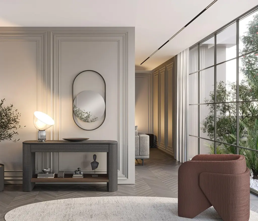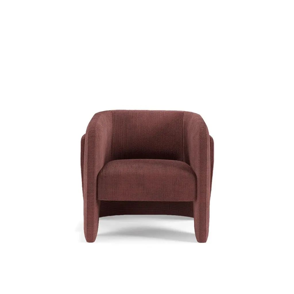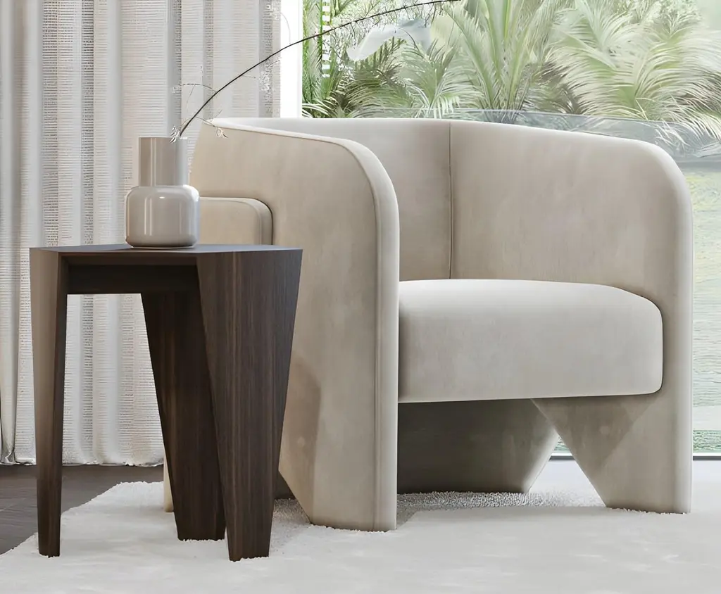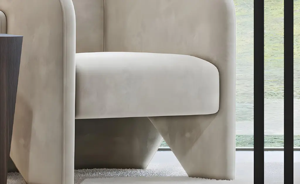 Contemporary Minimalist Armchair Fully Upholstered In Performance Velvet