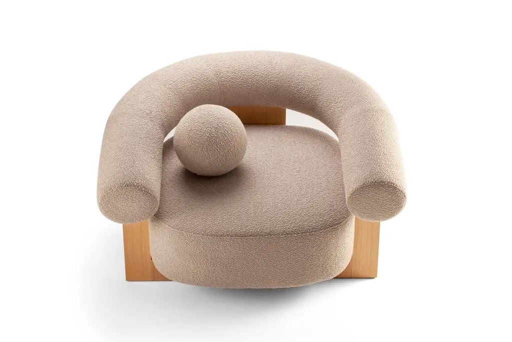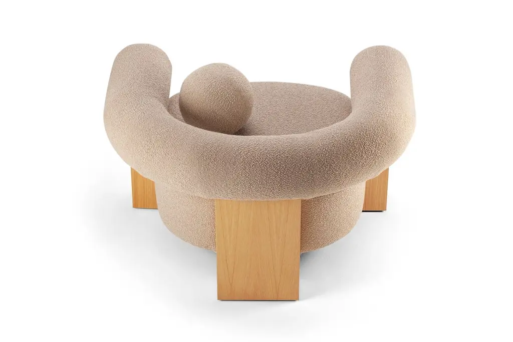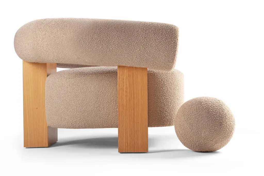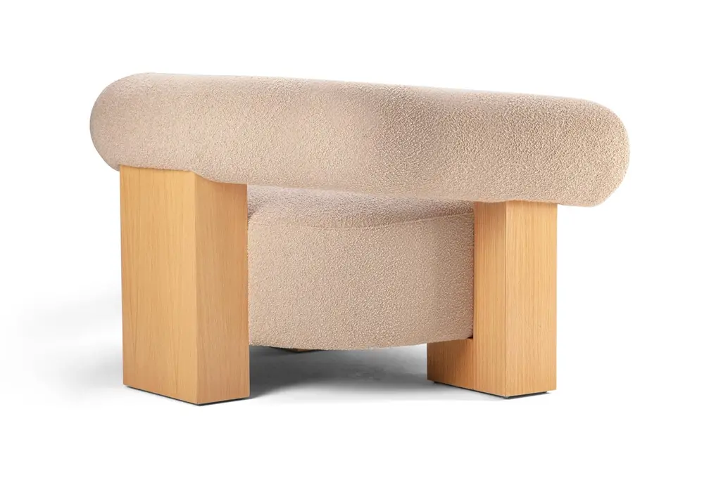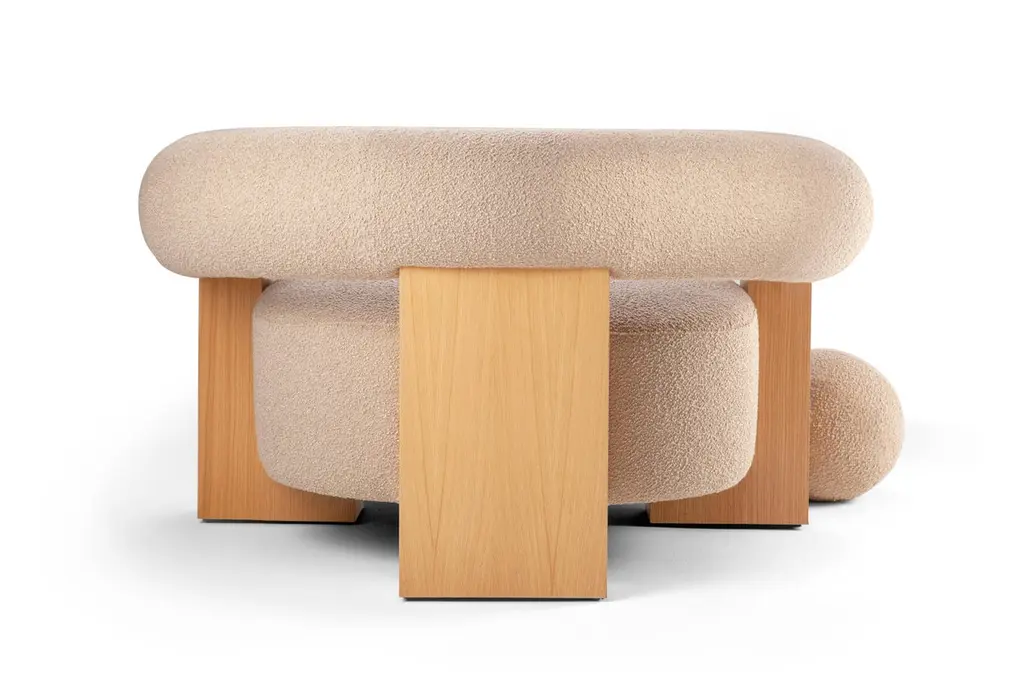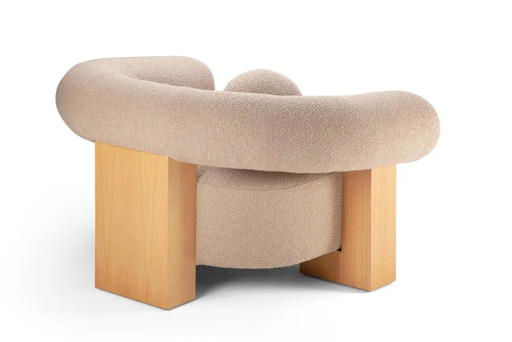 Contemporary Modern Cassette Armchair In Beige Boucle By Collector Studio