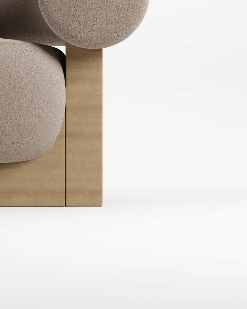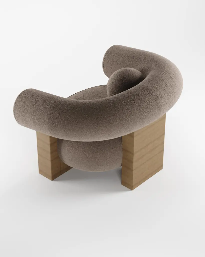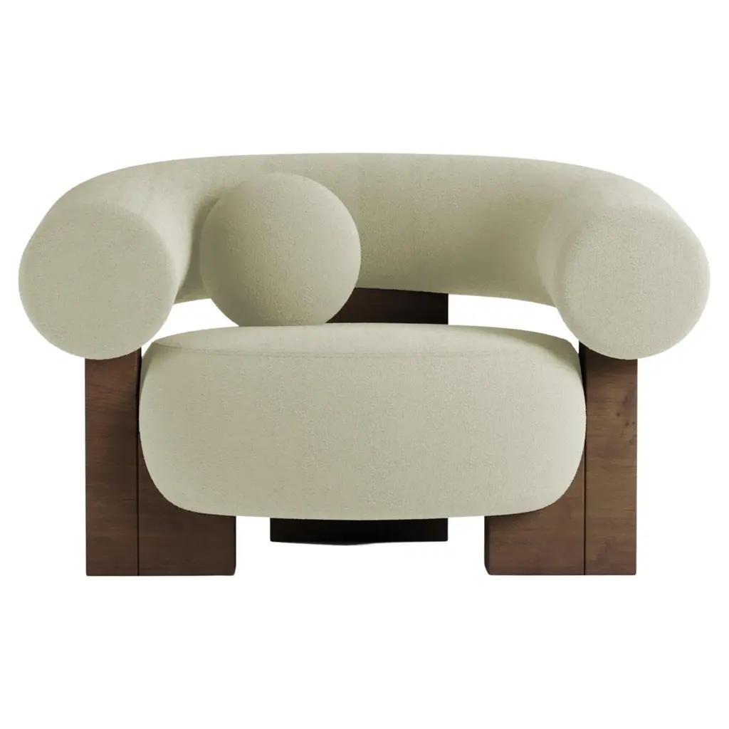 Contemporary Modern Cassette Armchair In Taupe Boucle, Collector