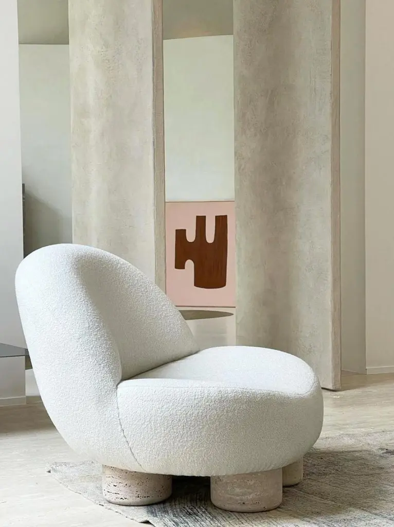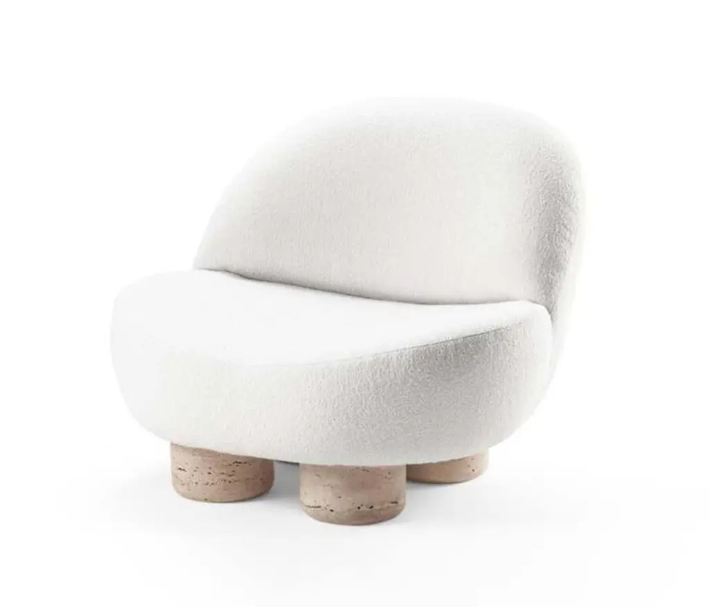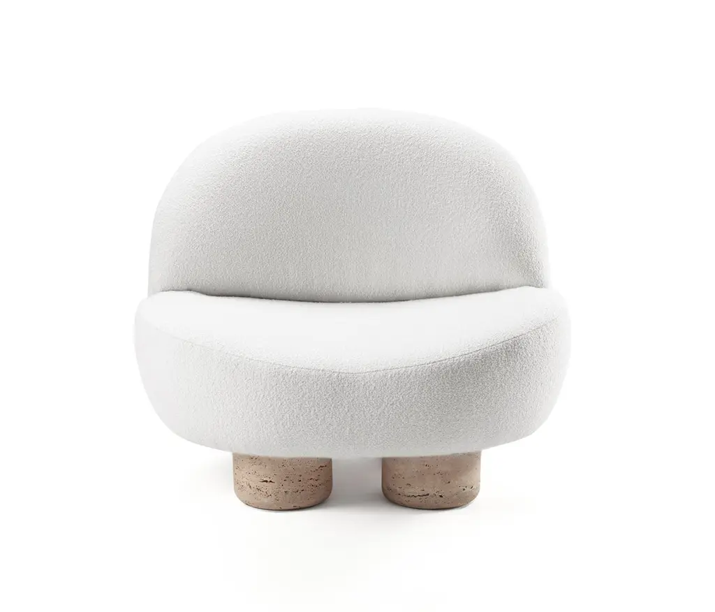 Contemporary Modern Hygge Armchair In Fabric & Travertino By Collector Studio