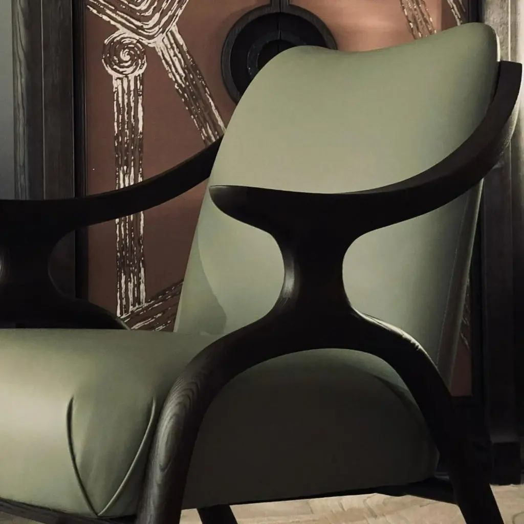 Description : the softer contour armchair suggests the curving lines of rice paddy fields, combining masculinity in its overall form with a hint of sensuality. it is crafted from solid ash and genuine leather.