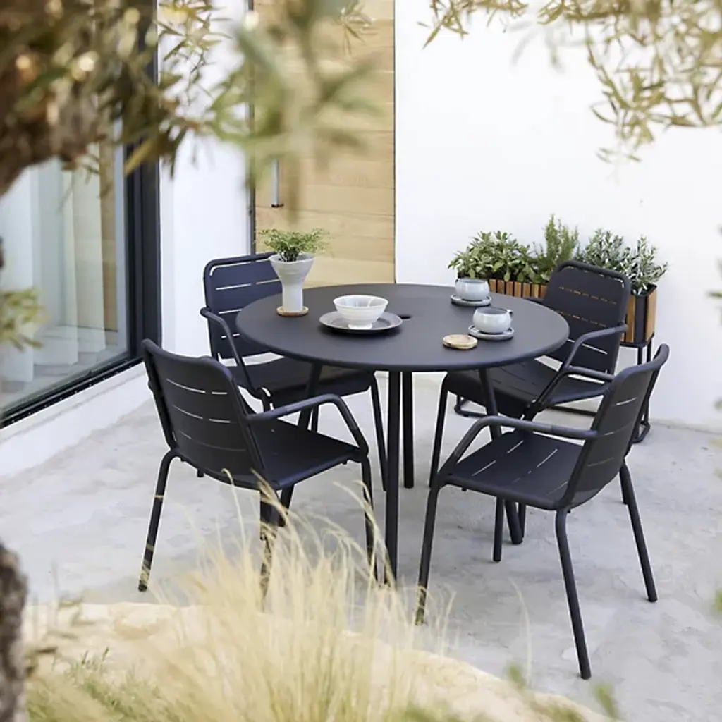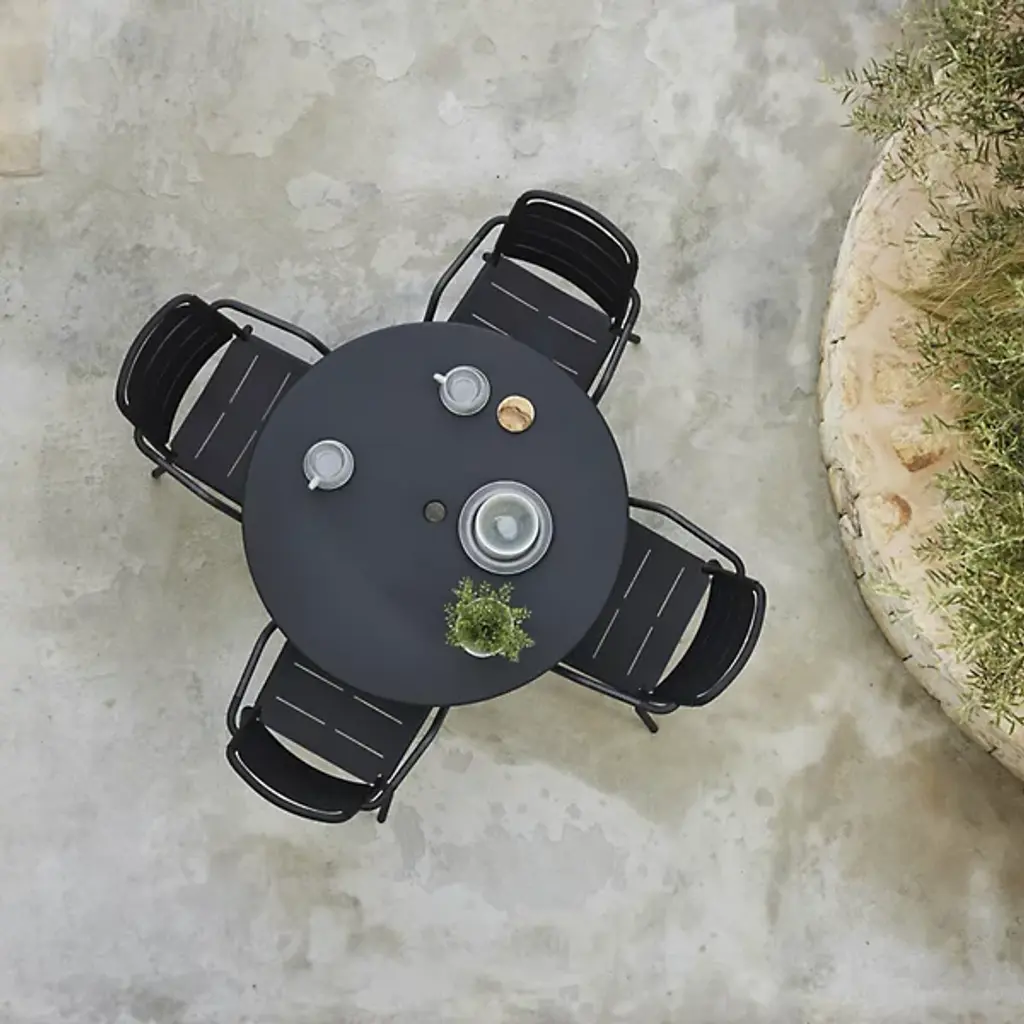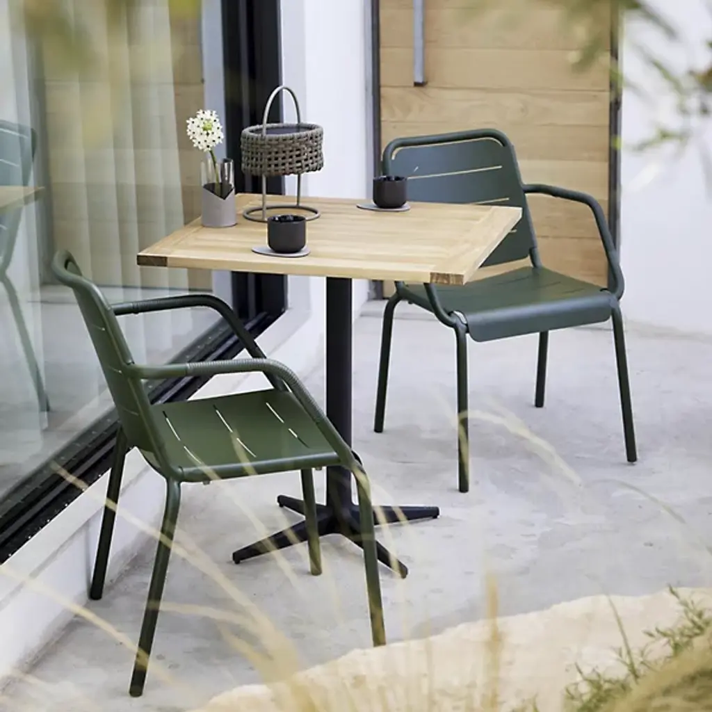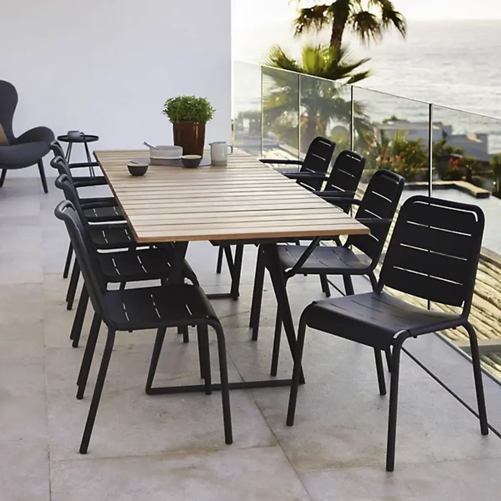Give your outdoor seating arrangement a contemporary look with the Copenhagen Outdoor Stackable Armchair by Cane-line. This chair’s seat extends slightly over the edge of its durable aluminum frame. With contouring arms, you can stay in a relaxed position while seated. The Copenhagen Outdoor Stackable Armchair is made to withstand changes in outdoor weather conditions with ease. Meticulously designed for stacking, you can place this chair atop additional Copenhagen Outdoor Stackable Armchairs for quick storage.