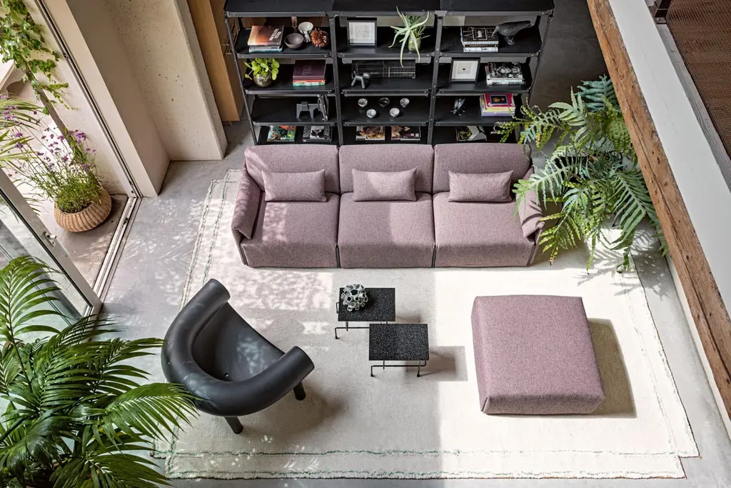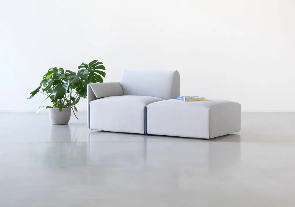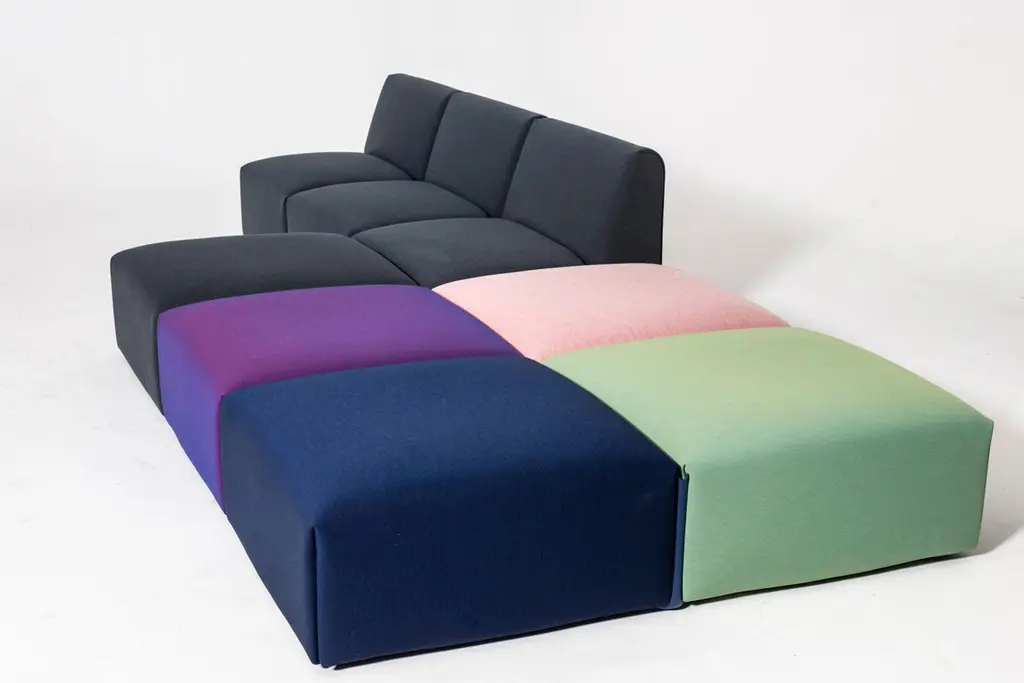 At the heart of Costume is a body made from recycled and recyclable polyethylene produced using rotational moulding technology from furniture and car industry waste. An insert made of pocket spring cores provides the cushioning for the seat and backrest. On top of this is a thin layer of polyurethane foam. The whole is held together by a cover made of fabric that can be fastened on using tension belts and easily removed at any time. Not only does this system use much less foam in manufacturing than conventional sofas – most of the materials used can also easily be recycled.