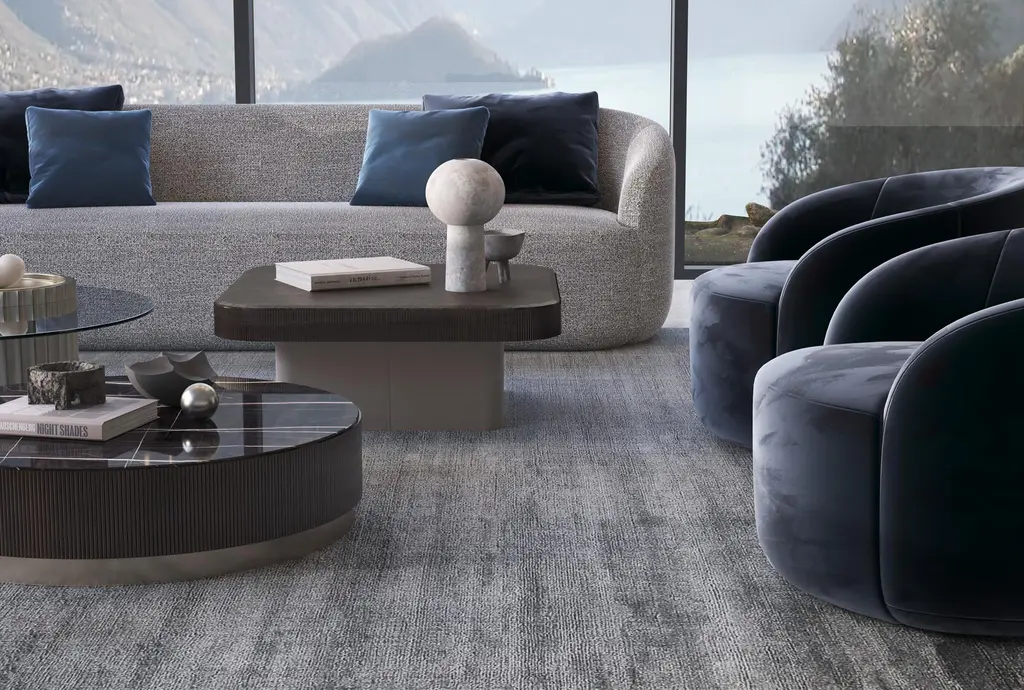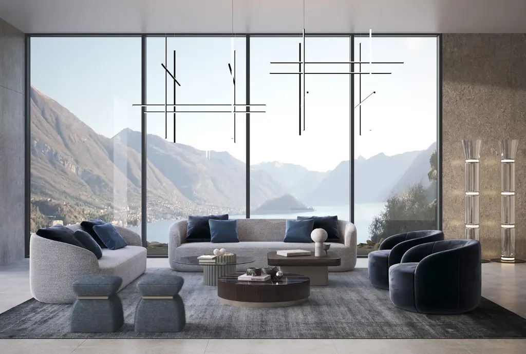 The rounded, curved shape, is crafted into the unique and original design of this well-proportioned and visually distinctive sofa series, available in custom sizes, ensuring intimacy and convivial socialization in any interior. Upholstery in your choice of stunning fabric or leather. The playful, gently enveloping ‘Cottonflower’ family seatings invites relaxed contemplation and comfort.