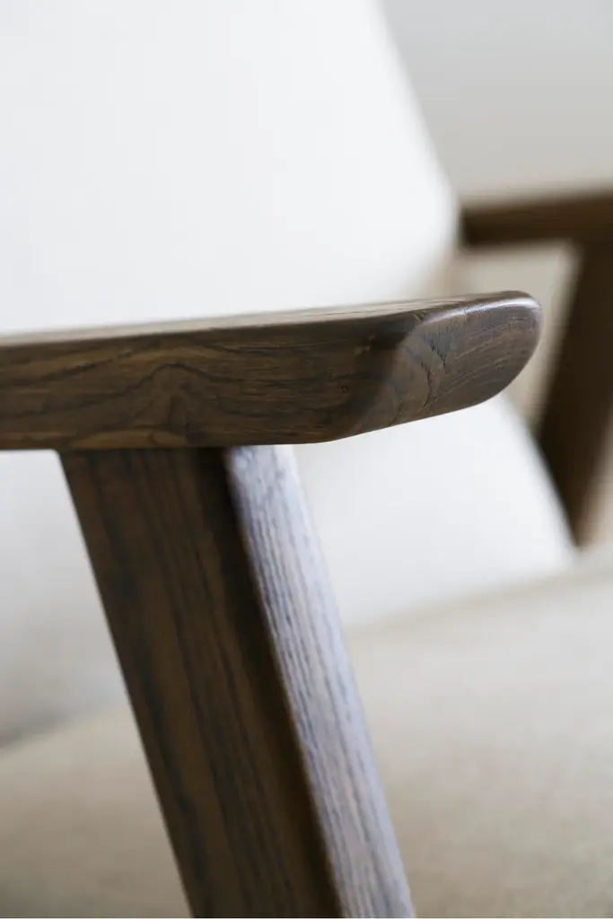 Riding off of mid-century design, the clean, laid-back lines of Rory are perfect for calm, contemporary spaces. Skillfully designed by Andrew Martin, Rory's angled legs run off of the sleek, sloped arms of a natural ash wood frame, which is complemented by the fresh linen upholstery in creamy, off-white color tone.