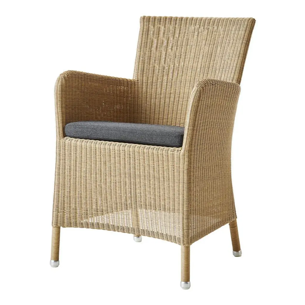 This luxurious garden arm chair is a great example of Danish design at its finest. The Hampsted garden chair is available in 4 different frame colours, and thus offers numerous possibilities. The Hampsted garden chair is the result of many hours of careful craftsmanship, a fact shown in its fine and precise loom weave style. The high quality of the materials used means that a Hampsted garden chair can be left outside in all types of weather and environments, and still remain maintenance free.Note: Frame and cushion sold separately.