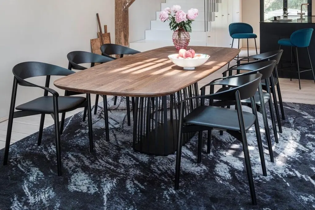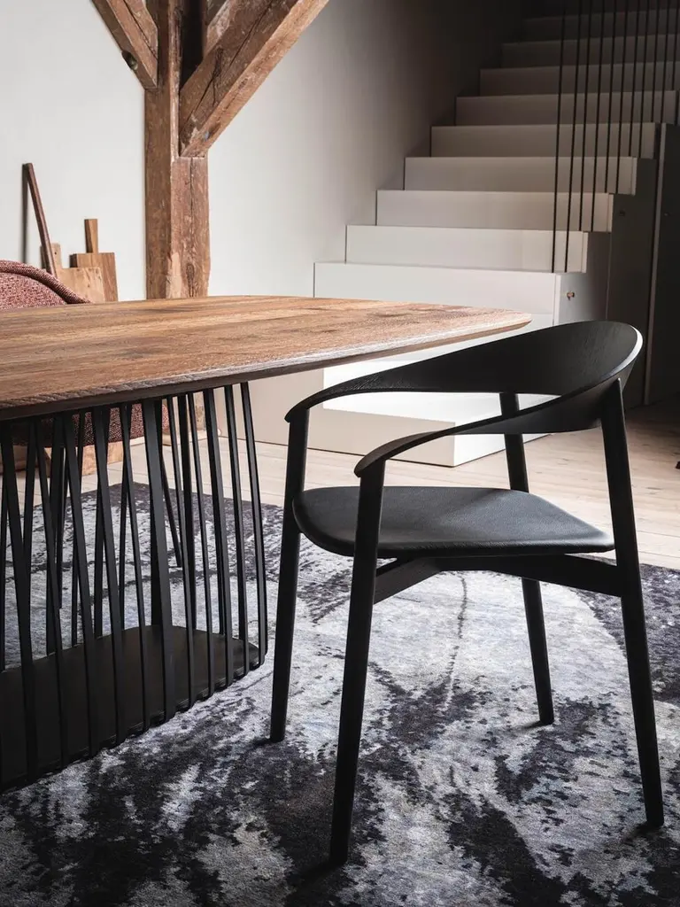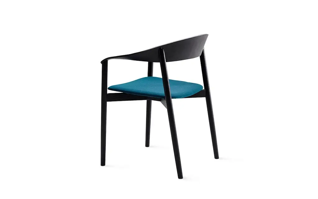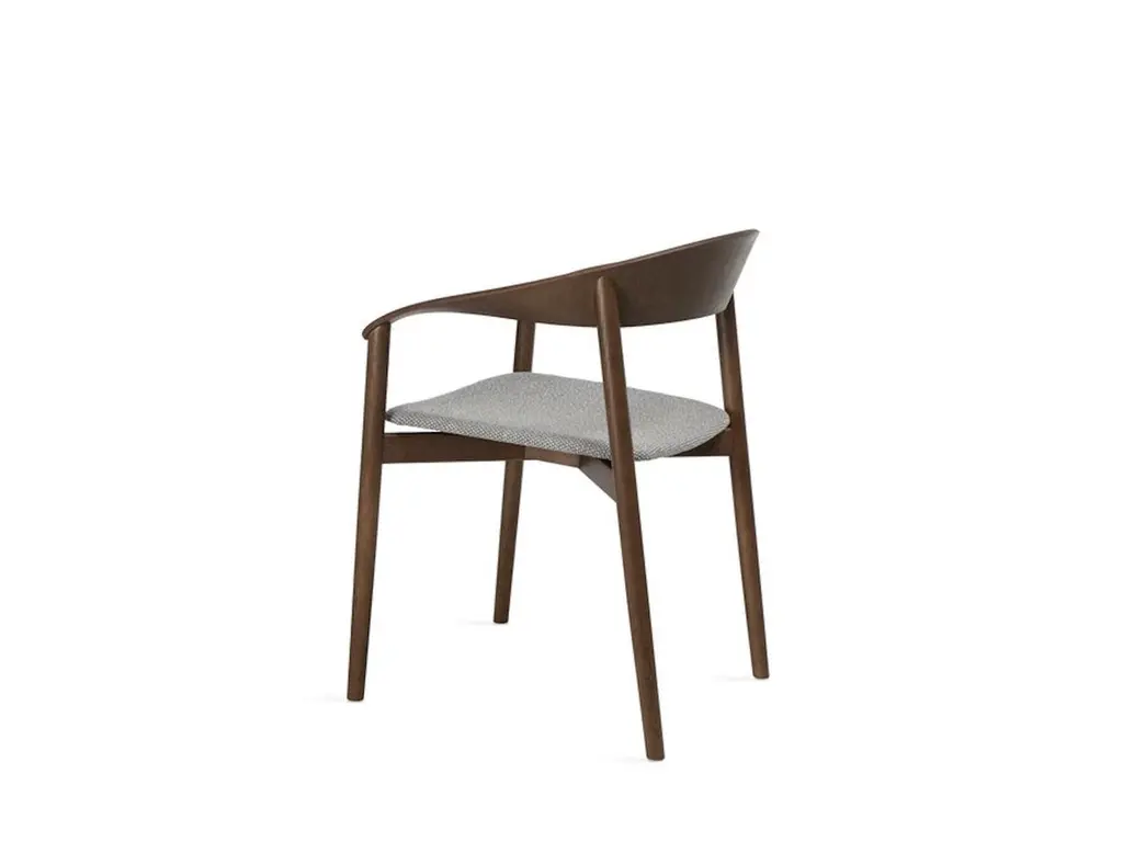 Price listed for starting fabric and walnut1Clear and dynamicStraight-lined design, reduced to the essentials - a solid wood chair that offers more comfort than you think.With Stella, the Hanoverian Patrick Frey has developed furniture that is above all timeless. The armrests and backrests are made of curved oak, the fine arch of which clings dynamically to the seated person. The filigree feet, which cross in the middle and support the ergonomically shaped seat, run from this backrest element.Stella is available in many types and colors of wood.