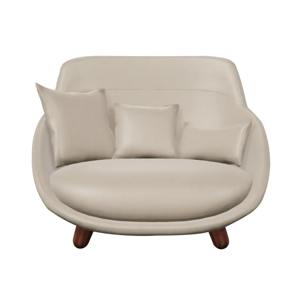 A chair with wooden legs, featuring an external leather upholstery and internal lining made of either leather or fabric. The wooden legs provide a sturdy, classic foundation, while the leather exterior adds a touch of elegance and durability. The internal lining, which can either be leather or fabric, offers a comfortable and soft seating experience, making the chair both stylish and functional. The combination of materials gives the chair a timeless and sophisticated look, perfect for various interior settings.