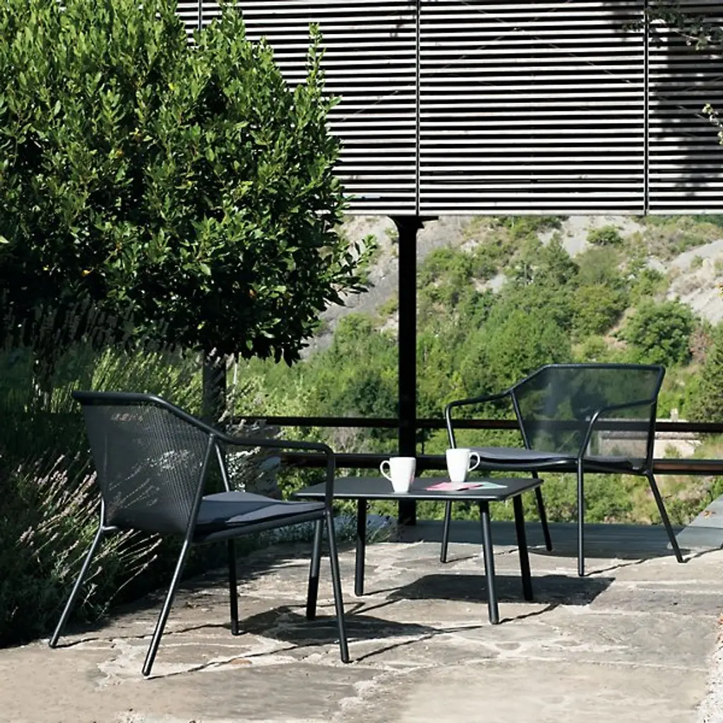 The Darwin Outdoor Stacking Armchair Set of 4 from Emu is a balanced piece, adapting to most body types with a comfortable mesh design. Designers Lucide e Pevere emphasizes compositional rigor and handcrafted quality in each design. This armchair features a steel construction in a powder-coated finish for peace of mind and durability. Tubular steel moves in brief angles to create a stackable light frame. A mesh pattern covers the seat and backrest as a textured, form-hugging surface. This see-through mesh reveals its surroundings and lets air pass through for cooling comfort.