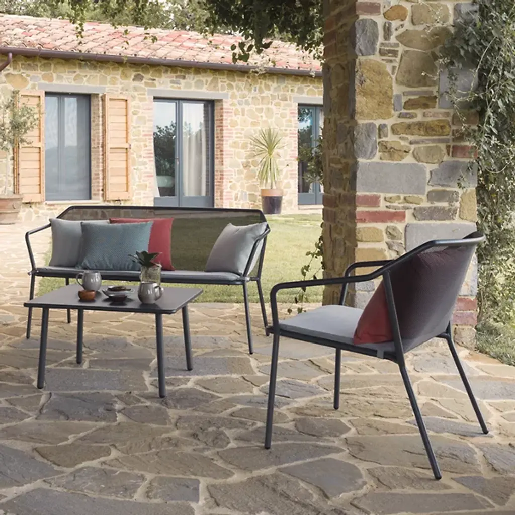 The Darwin Outdoor Stacking Armchair Set of 4 from Emu is a balanced piece, adapting to most body types with a comfortable mesh design. Designers Lucide e Pevere emphasizes compositional rigor and handcrafted quality in each design. This armchair features a steel construction in a powder-coated finish for peace of mind and durability. Tubular steel moves in brief angles to create a stackable light frame. A mesh pattern covers the seat and backrest as a textured, form-hugging surface. This see-through mesh reveals its surroundings and lets air pass through for cooling comfort.