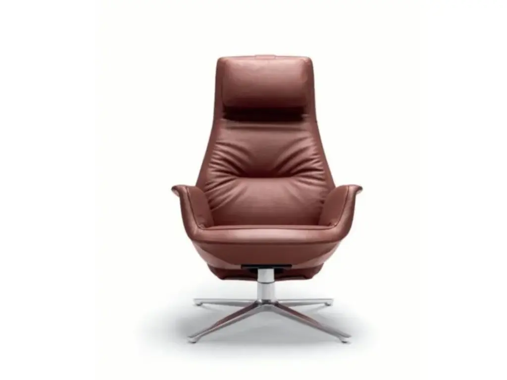 The twin of DS-343 DS-344 is the twin of the armchair that reinvented sitting: same creators, same idea, just a little different in appearance. This version of the armchair, which protects the pelvis and back, uses leather in a thinner version: a sustainable raw material that we use for comfort. This makes the chair somewhat lighter, and its appearance and feel allow for further areas of application.“SuperSeating” is the name of Bart Van der Heyden’s laboratory. And the Belgian knows what he is doing and what he is talking about. A physical therapist by training, he combines the findings of science and medicine with a wide variety of materials to fulfill his mission: to make sitting an even more pleasant experience. With DS-344, the smaller version of the DS-343 technical miracle, Van der Heyden used his “Dynamic Postural Stability” concept to develop an armchair in which the back element moves along with it from pelvic eight without any mechanical effort, solely through the posture of the seated person, who holds him- or herself in a dynamic equilibrium accompanied by a feeling of weightlessness.Additional information:Material: LeatherCategory: Select - BlackType: Nappa leather, lighty pigmentedThickness: 1.2 to 1.4 mmCharacteristics: Elegant in appearance, particularly durable, less sensitive to humidity, spots and light exposure thanks to an easy-care finish. Living unites practical considerations with a high aesthetic.Dimensions: 71 W x 101 D x 117 H cmSeat height 42 cmArmrest height 61 cmAvailable in other upholstery options: Living, touch, natural and coloral.