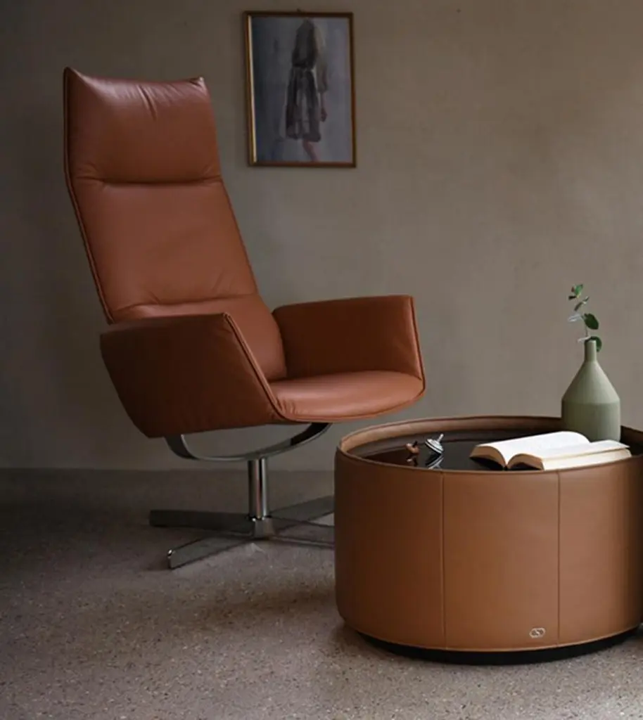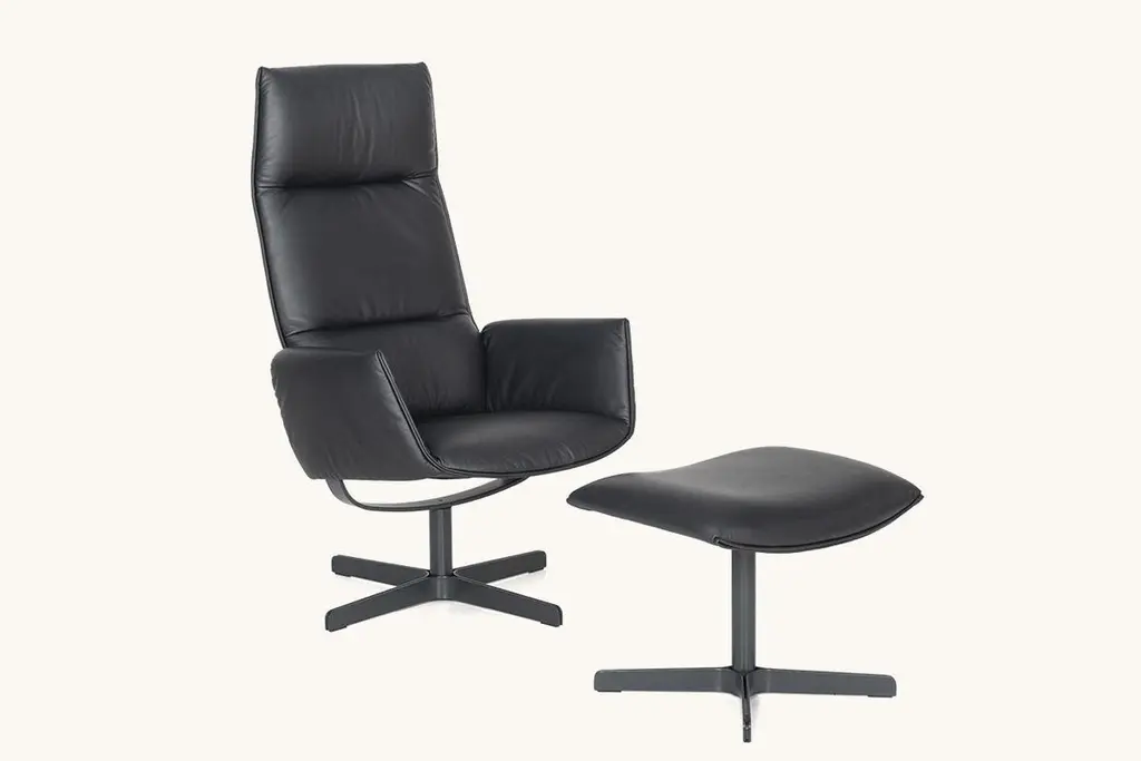 The twin of DS-343 DS-344 is the twin of the armchair that reinvented sitting: same creators, same idea, just a little different in appearance. This version of the armchair, which protects the pelvis and back, uses leather in a thinner version: a sustainable raw material that we use for comfort. This makes the chair somewhat lighter, and its appearance and feel allow for further areas of application.“SuperSeating” is the name of Bart Van der Heyden’s laboratory. And the Belgian knows what he is doing and what he is talking about. A physical therapist by training, he combines the findings of science and medicine with a wide variety of materials to fulfill his mission: to make sitting an even more pleasant experience. With DS-344, the smaller version of the DS-343 technical miracle, Van der Heyden used his “Dynamic Postural Stability” concept to develop an armchair in which the back element moves along with it from pelvic eight without any mechanical effort, solely through the posture of the seated person, who holds him- or herself in a dynamic equilibrium accompanied by a feeling of weightlessness.Additional information:Material: LeatherCategory: Select - BlackType: Nappa leather, lighty pigmentedThickness: 1.2 to 1.4 mmCharacteristics: Elegant in appearance, particularly durable, less sensitive to humidity, spots and light exposure thanks to an easy-care finish. Living unites practical considerations with a high aesthetic.Dimensions: 71 W x 101 D x 117 H cmSeat height 42 cmArmrest height 61 cmAvailable in other upholstery options: Living, touch, natural and coloral.