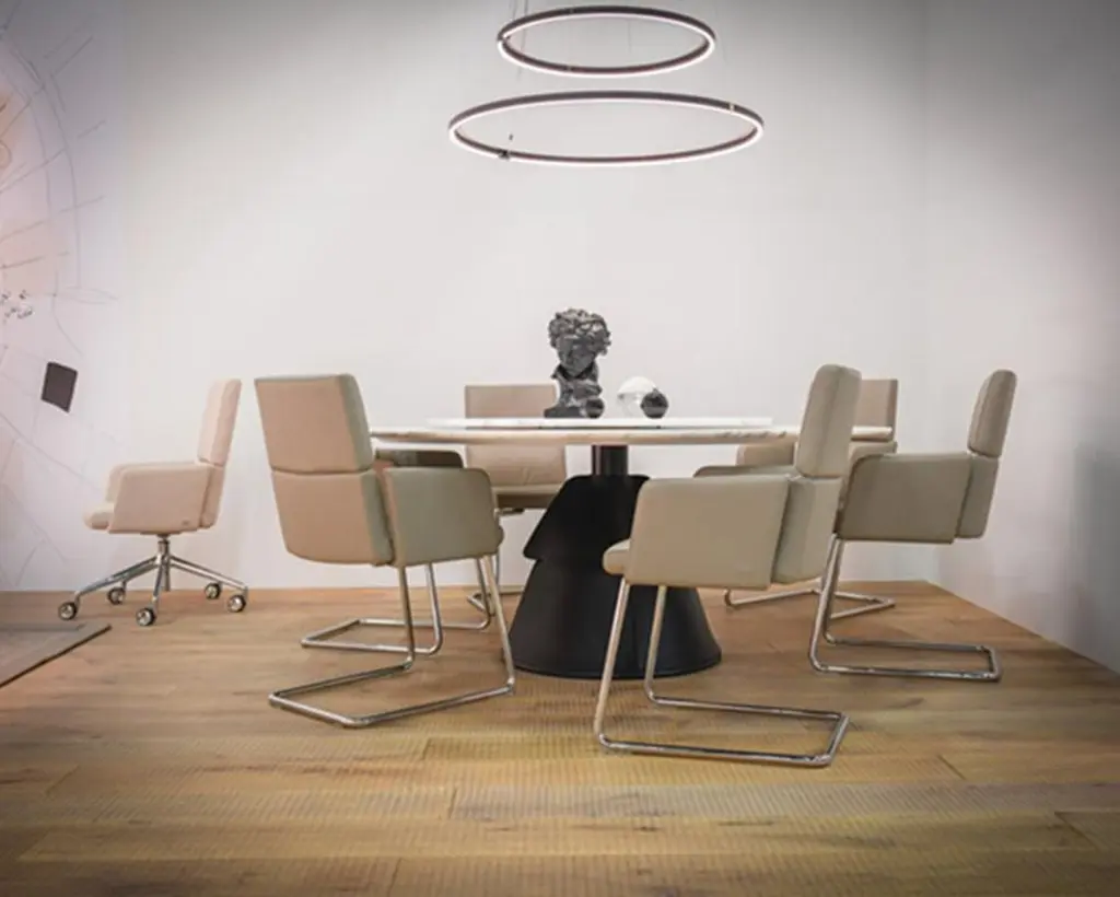 When the little brother suddenly grows up DS-414 is a chair that follows the movements of the person seated and provides noticeable support for the sitting posture: sitting has never been so healthy – no wonder, since the model is based on a novel movement mechanism. Available as a cantilevered chair or with a star base, the consistent further development contains everything one needs to bring the new culture of sitting to the table. But De Sede takes things a step further still, by selecting materials that permit a high-quality material mix of leather and fabric, suddenly lending DS-414, the little brother, a distinctive appearance all its own.How do you unite perfect ergonomics and optimal comfort? By sitting down in DS-414 – the evolved form of the DS-343 wing chair that adapts to the movements of the person seated. With DS-414, too, the object is not constructed with a Classic seating area that stops at the backrest, instead, it extends up to the height of the pelvis. If one leans backwards, the backrest element, from pelvic height on up, automatically moves along with the user, without any mechanical effort, and solely as a result of the change in the posture of the person seated. DS-414 can be set up or positioned anywhere without any problems, making the joys of dining even more pleasurable and the fun of company even greater than before: the proven movement mechanism actively supports the spine, promoting better posture and making everything a delight: dining, discussing, reflecting, even working at the table is suddenly a great deal easier.Additional information:Material: FabricCategory: Maple - 7716-222Type: Upholstery fabric 81% viscose, 15% linen, 4% polyesterCharacteristics: Maple is made of three tone-in-tone matched yarns and refined with an aero finish. This results in a particularly soft fabric which is given an unmistakable sheen by the viscose used. Depending on the incidence of light and perspective, the numerous color nuances become visible. Maple is woven with a velvety chenille yarn and thereby provides an extremely soft pile which makes the structure of the fabric tangible.Dimensions: 57 W x 62 D x 107 H cmSeat height: 48 cmArmrest height: 64 cmAvailable in other upholstery options: Living, touch, cashmere, natural, club, coloral, craft, pine, re-wool, velour, select, arco, lilaAvailable in other base options: Star base, cantilevered base.