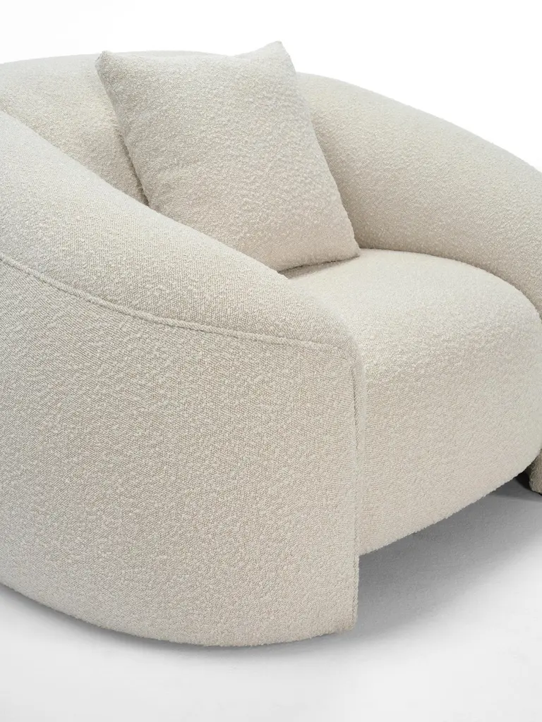 Deanis a contemporary armchair designed to envelop you in a deep sense of comfort and relaxation. The intelligent combination of down feathers and memory foam offers a uniquely soft and supportive seating experience, ideal for moments of unwinding. Its clean, modern lines make Dean a perfect addition to modern and contemporary interiors, whether in residential or hospitality spaces.Dean is available in a wide selection of premium fabrics, eco-leather, natural leather, or COM, allowing full customization to suit any design concept.Shown upholstered with Ascot Pearl fabric.