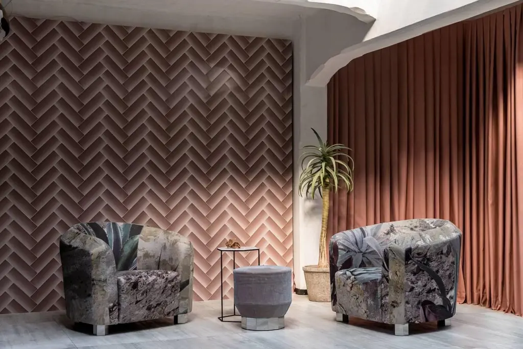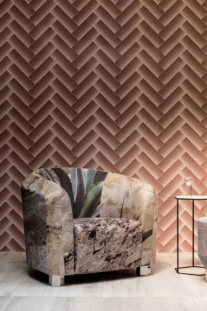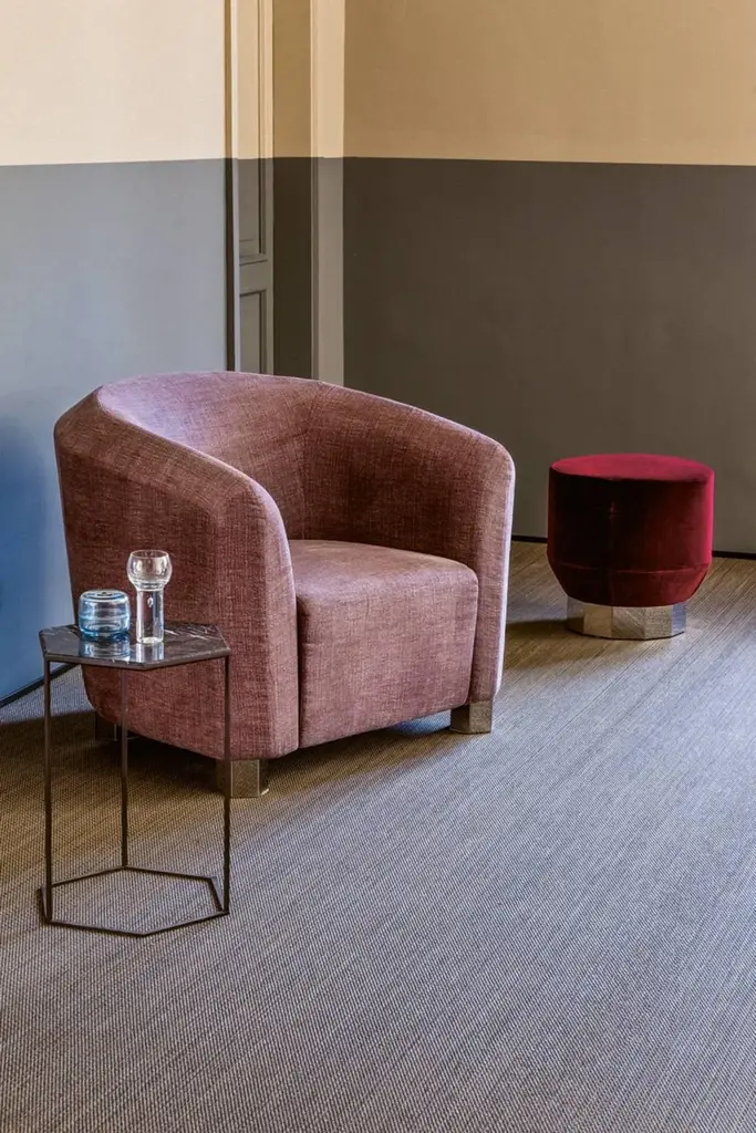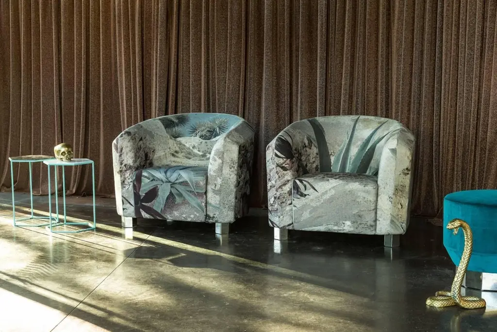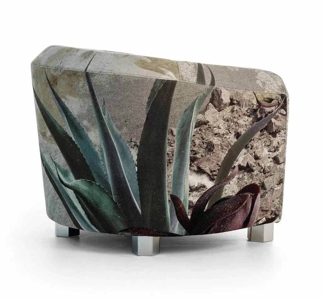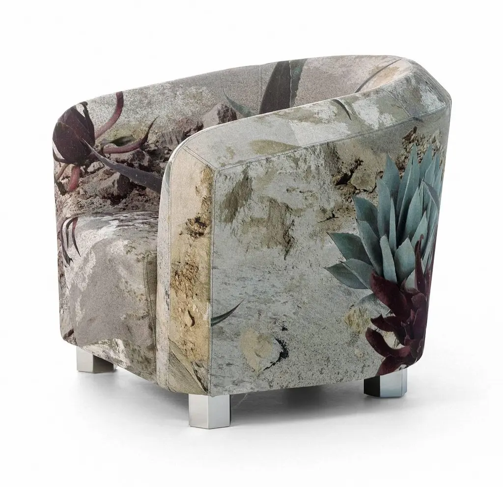 "Deco Futura" is an armchair, designed by Diesel Creative Team and manufactured by Moroso, featuring injected flame-retardant foam and polyester fiber over internal steel frame. Feet in varnished or in shiny stainless steel coated ash. Deco Futura collection has not removable covers.Indoor use only.DIMENSIONS:D. 36.2", W. 38.2", H. 31.5", Seat H. 16.9"Strong lines that sculpt their forms in space, recalling the bold geometries of twenties and thirties era design. In cool tones or printed with a desert landscape, they appear classic but, like a mirage, they fool the viewer, as the facets of their mirrored legs seem to disappear, leaving the seating pieces floating above the ground.MOROSO, with DIESEL, has created a collection of products with a relaxed and comfortable mood, taking its inspiration from an informal lifestyle concept and targeting consumers who like simple shapes yet at the same time seek a “modern” style made up of high quality combined with a distinctive design of pure lines.“We worked with the Diesel creative team to develop an interesting and alternative collection idea which was to represent two different yet coexisting aspects of certain contemporary trends: one which is darker in tone, inspired by the underground world and with a more aggressive and enigmatic aesthetic, and the other lighter, inspired by nature and a visual radiance, with soft and welcoming shapes”, explained Patrizia Moroso who always follows all the phases of every design project personally.