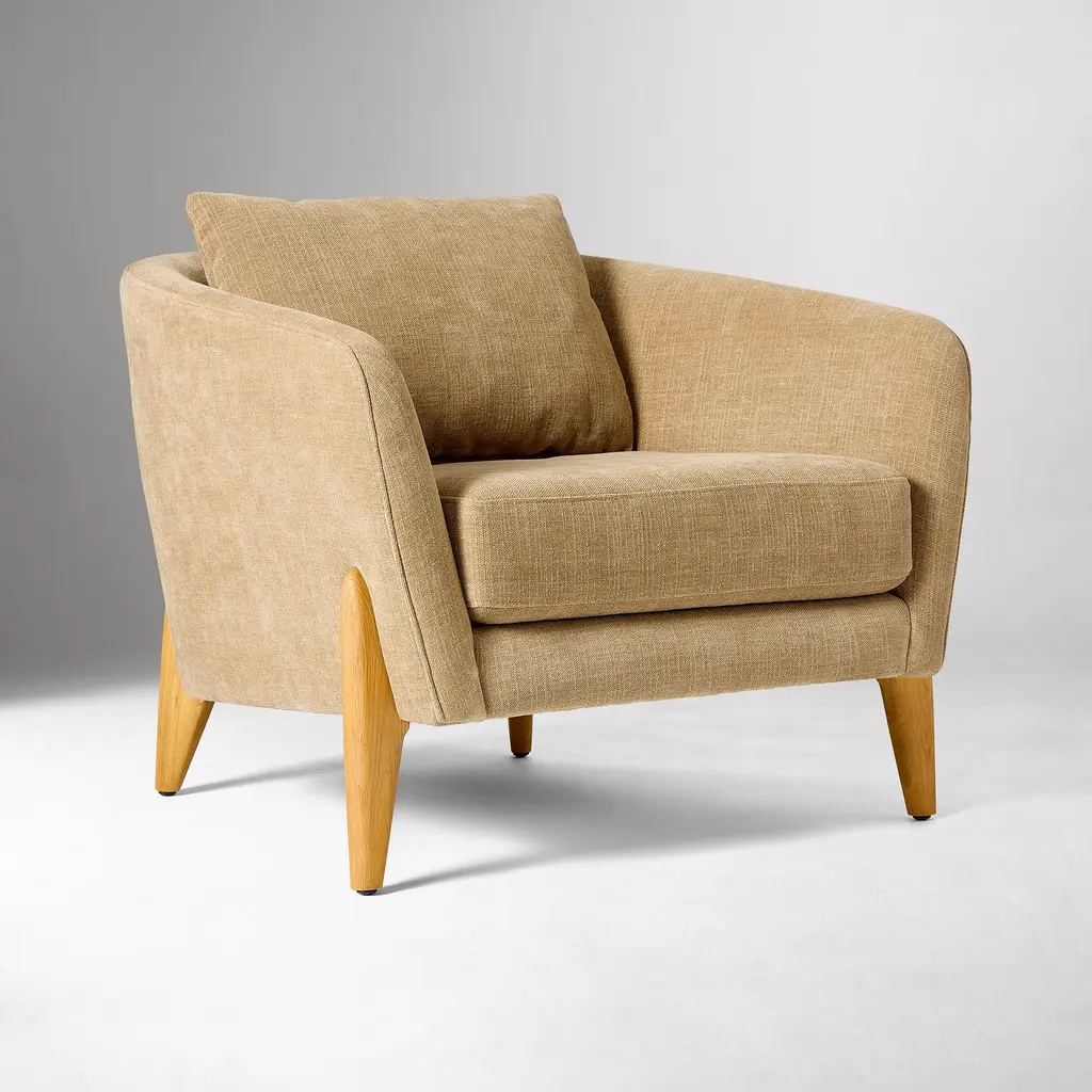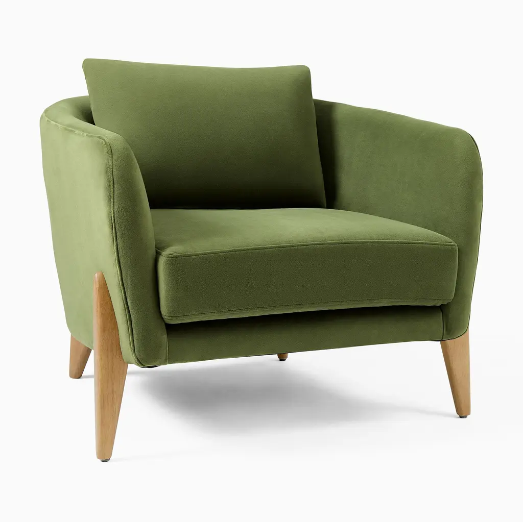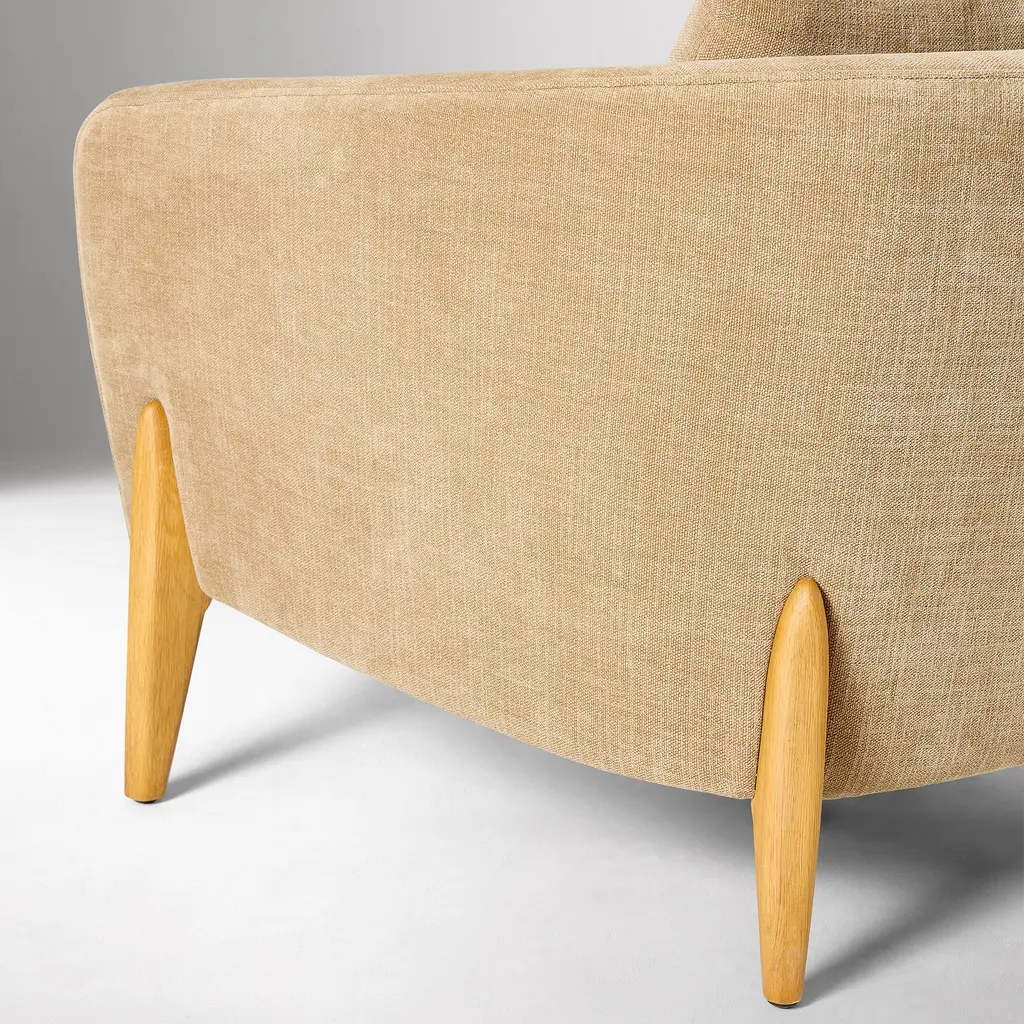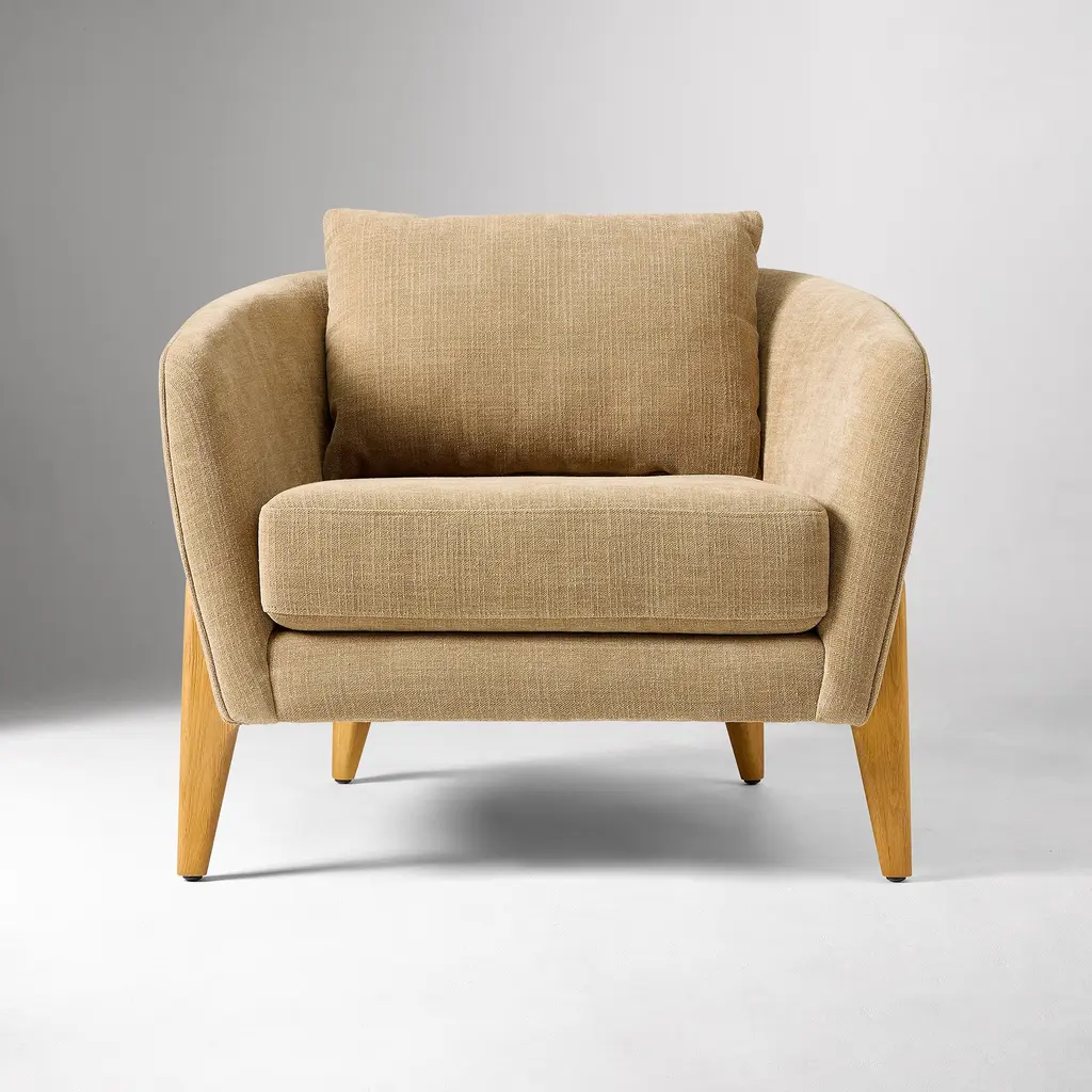 Exposed wood legs pop against your choice of upholstery. Softly rounded back beckons you to sit back and lounge awhile. GREENGUARD Gold Certified for a healthier home. Contract Grade, so you know it's built to last.