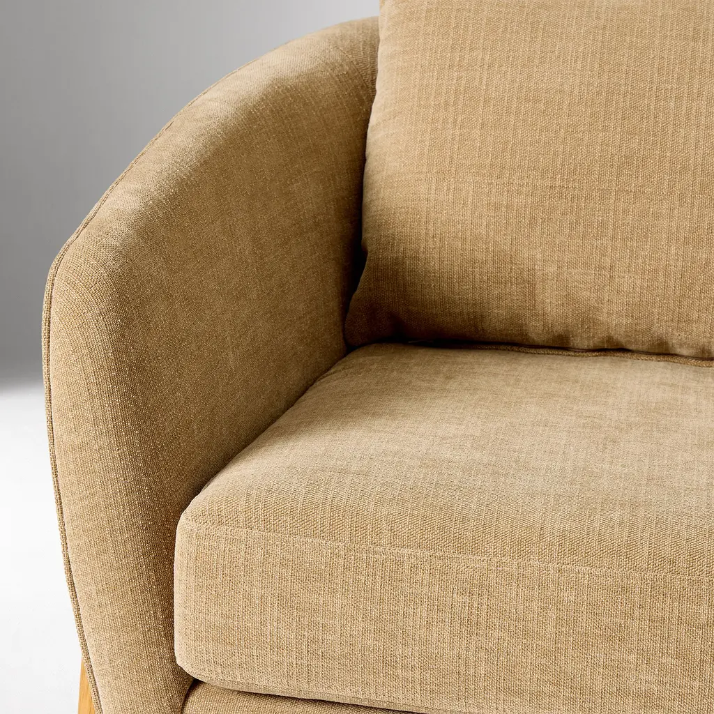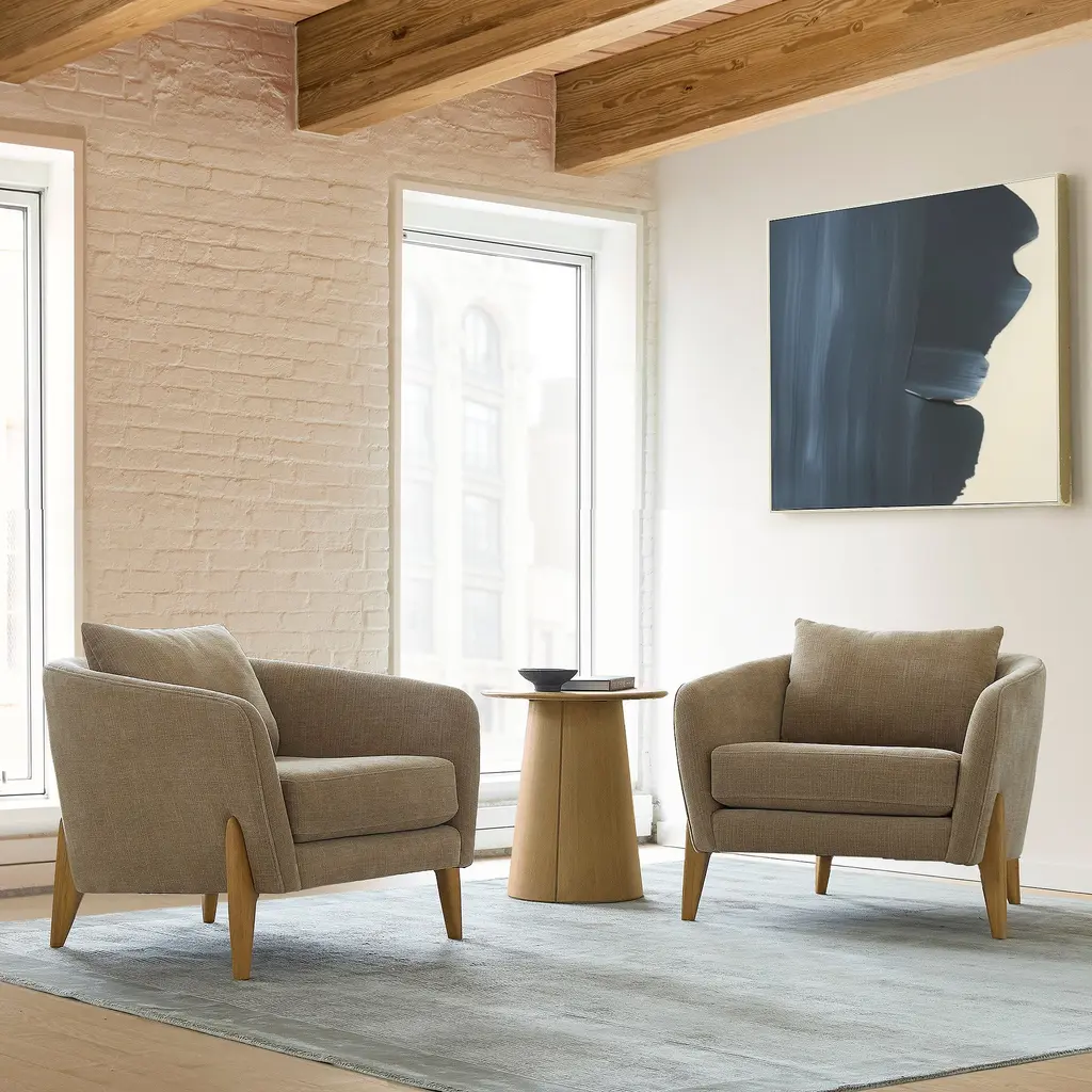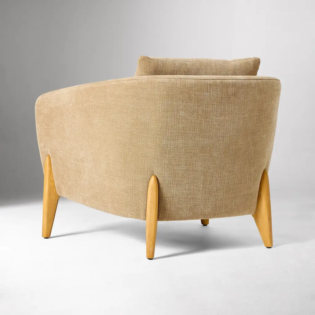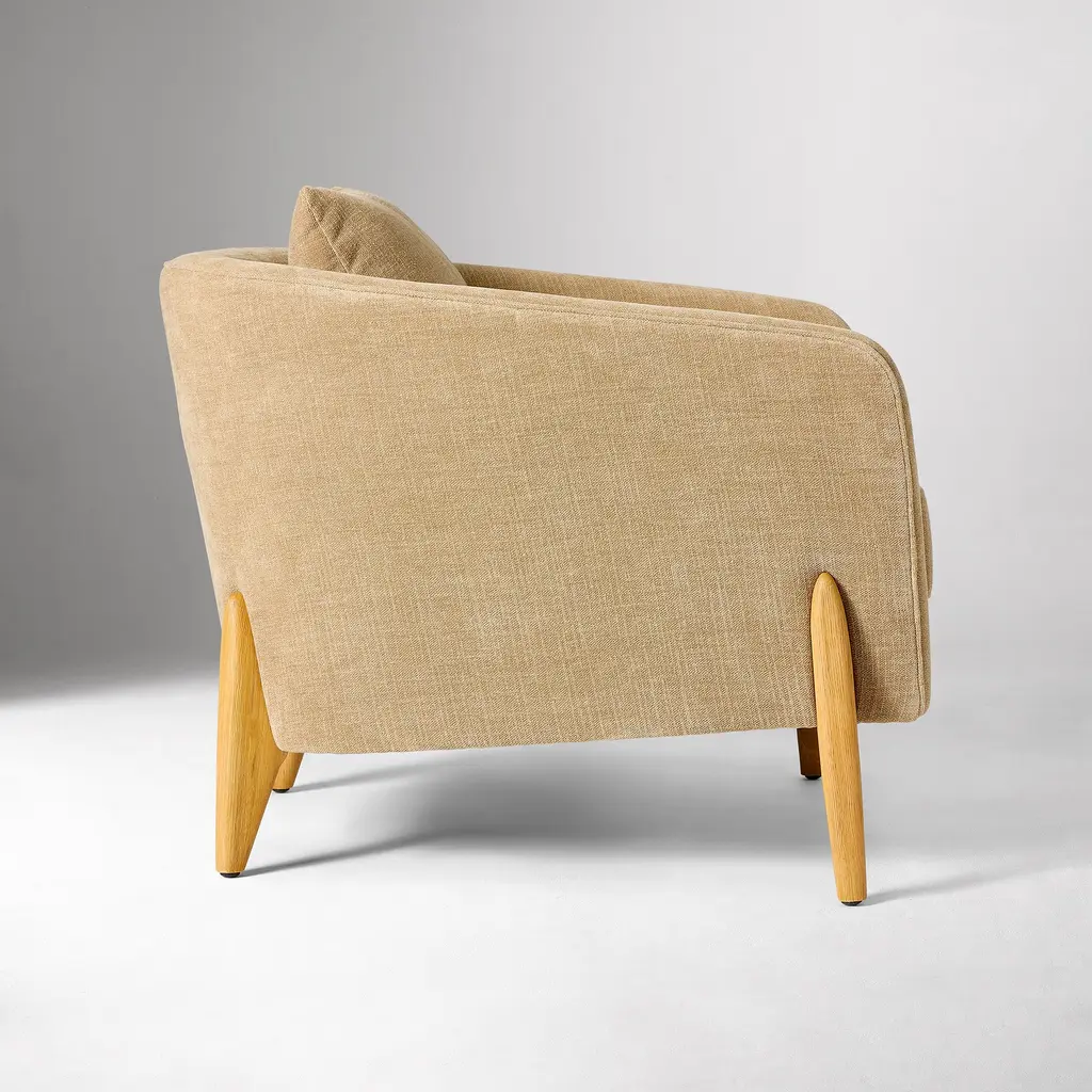 Exposed wood legs pop against your choice of upholstery. Softly rounded back beckons you to sit back and lounge awhile. GREENGUARD Gold Certified for a healthier home. Contract Grade, so you know it's built to last.