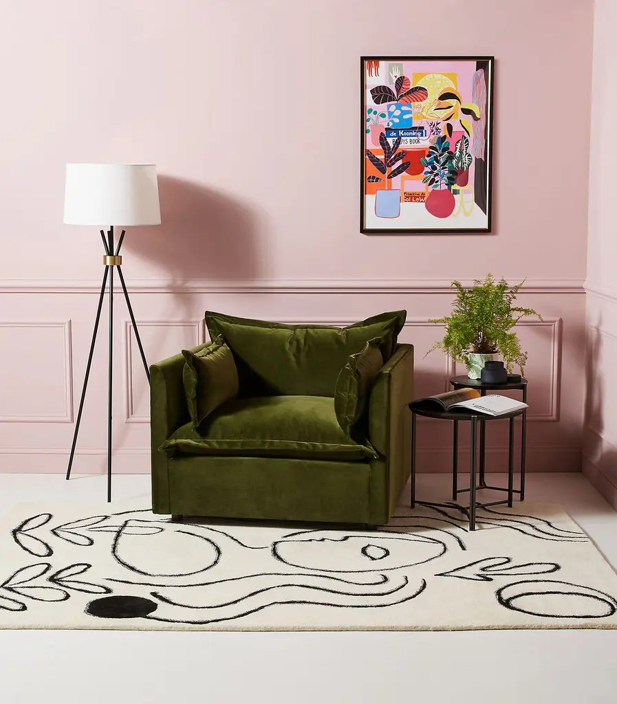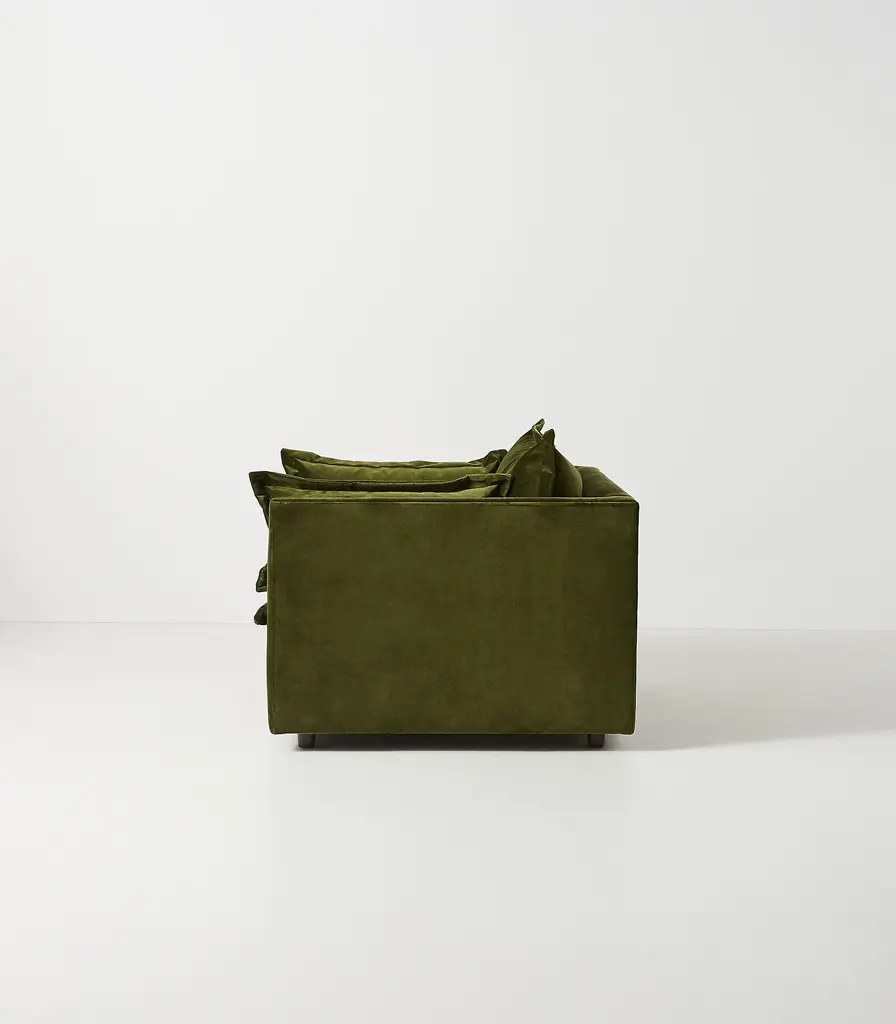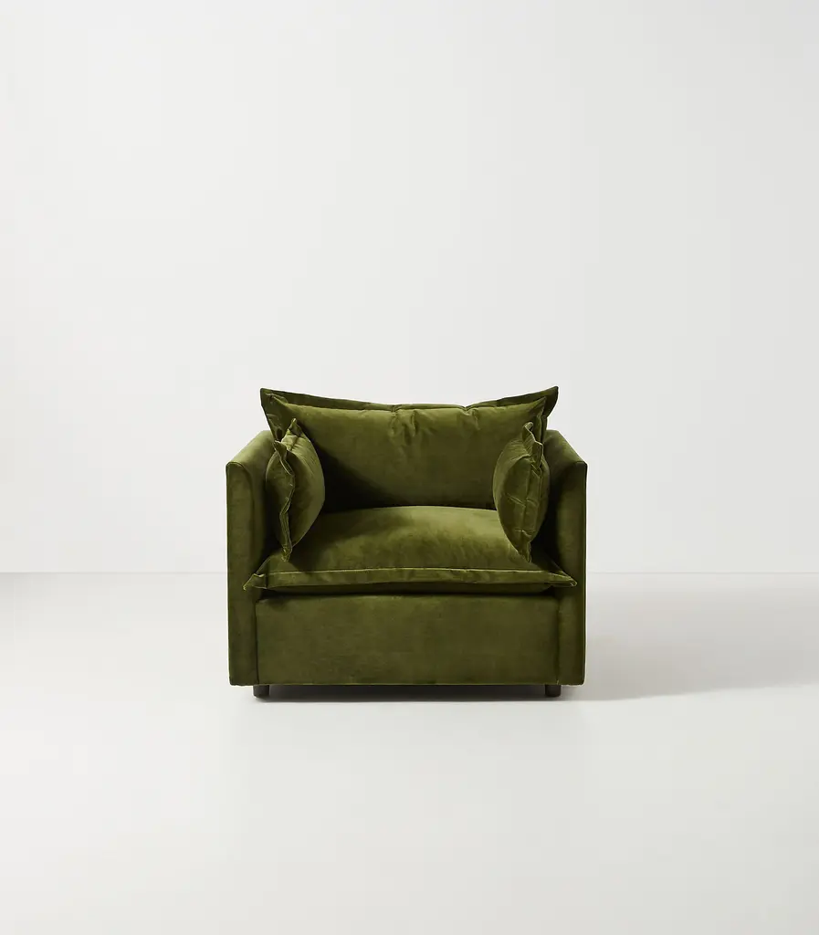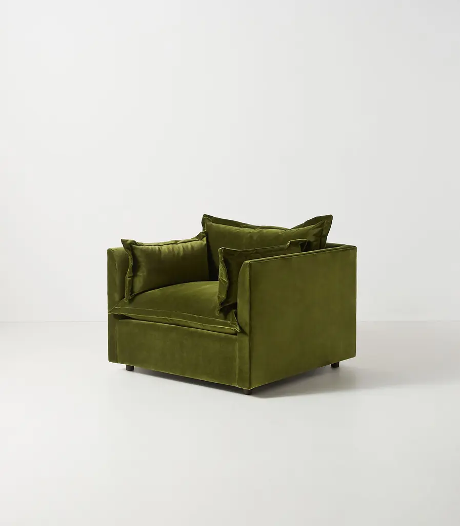 When space is at a premium, savvy seating is a must. Petite enough for cozy nooks and spaces, this laidback respite invites warmth to the home. But thanks to its plush cushions and oversized-armchair shape, it's big enough for you and your little one (or pup!) to cozy up.