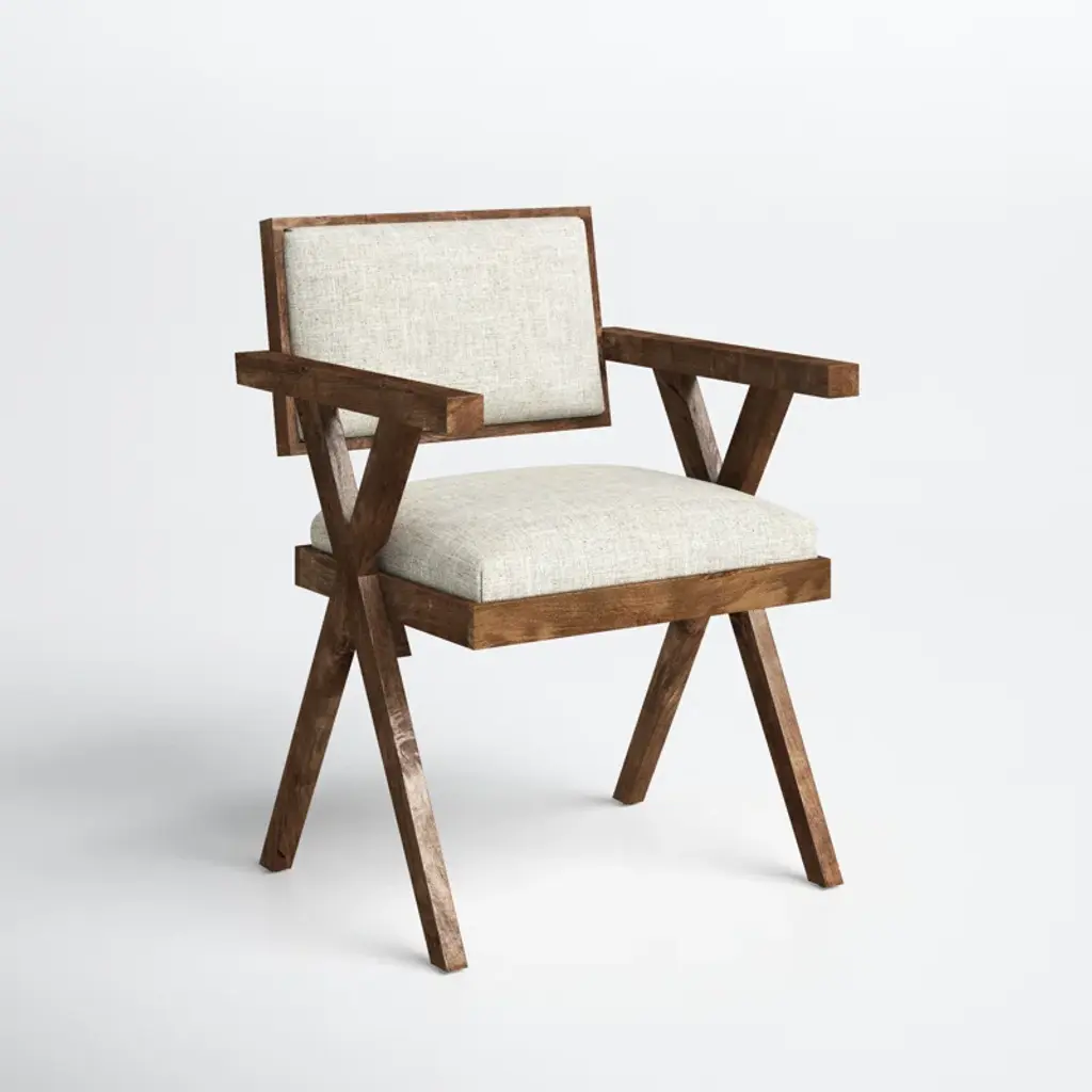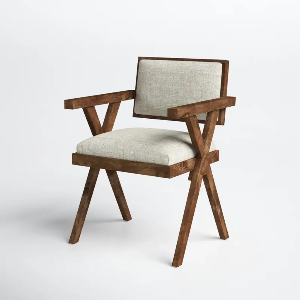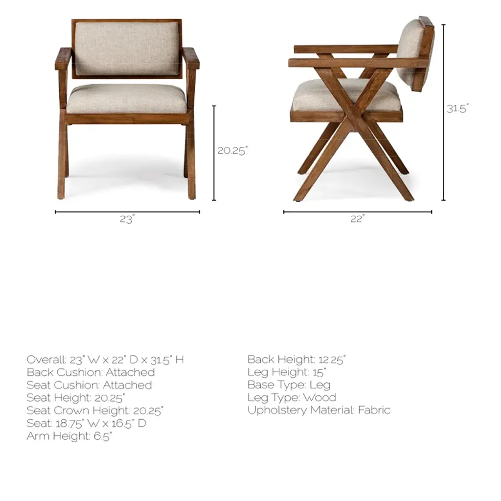 With its streamlined style and one-of-a-kind silhouette, all of your guests will be asking where you managed to score a find like this one. The frame is made from mango wood and finished in a neutral tone that's versatile and inviting. The x-frame sides add an angular, geometric element that easily complements the rectangular back, square seat, and straight arms. The seat and back are upholstered in a linen-cotton blend fabric and reinforced with foam padding, so you can enjoy extended lounging for long meals or cocktail hours in cozy comfort.