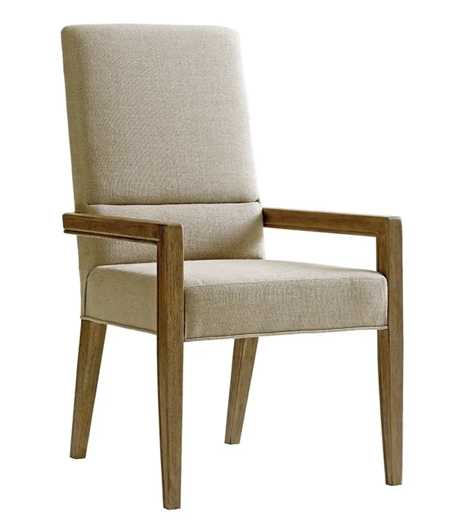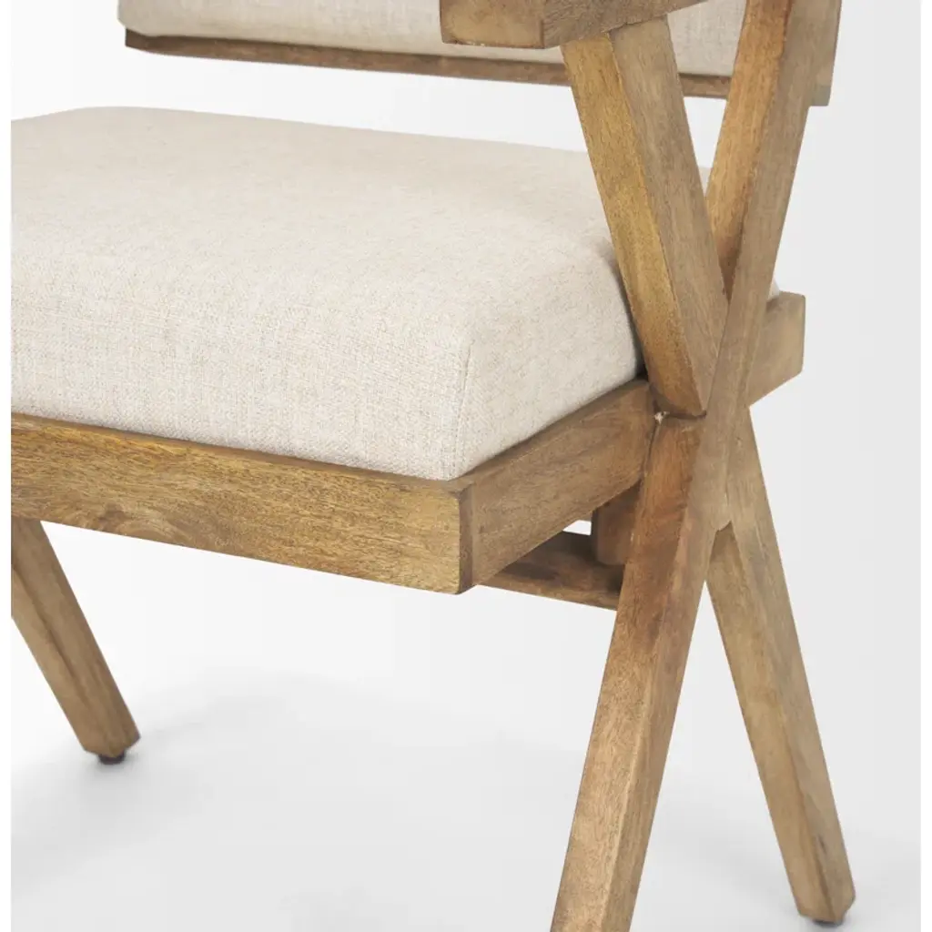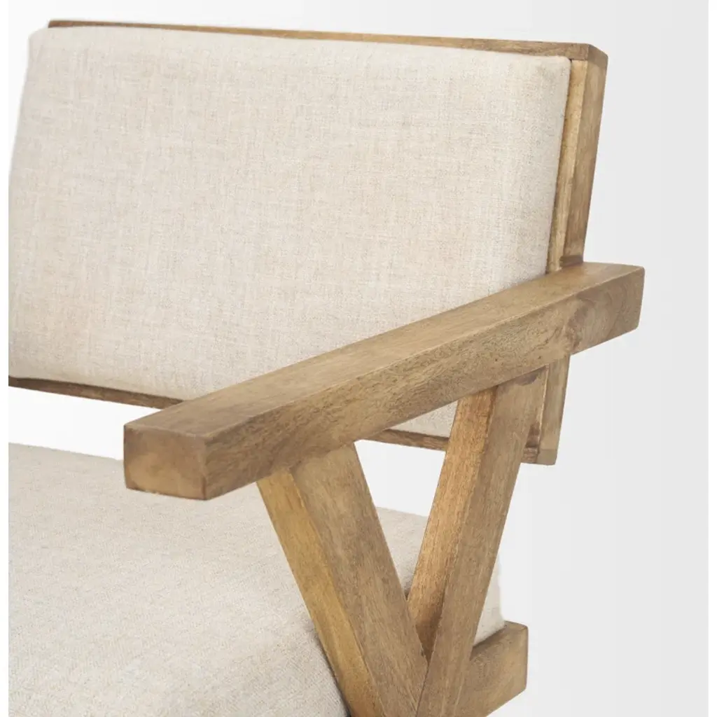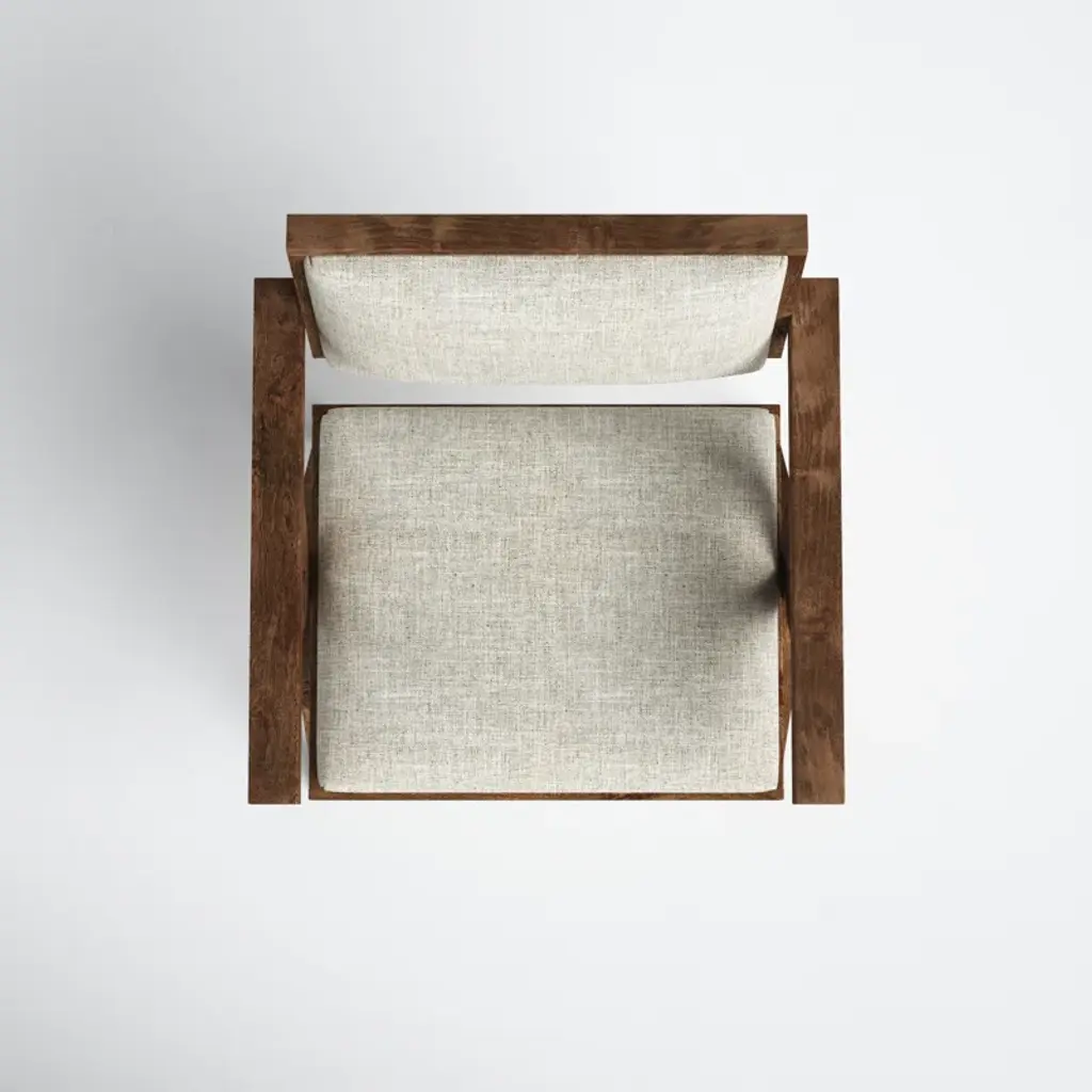 With its streamlined style and one-of-a-kind silhouette, all of your guests will be asking where you managed to score a find like this one. The frame is made from mango wood and finished in a neutral tone that's versatile and inviting. The x-frame sides add an angular, geometric element that easily complements the rectangular back, square seat, and straight arms. The seat and back are upholstered in a linen-cotton blend fabric and reinforced with foam padding, so you can enjoy extended lounging for long meals or cocktail hours in cozy comfort.