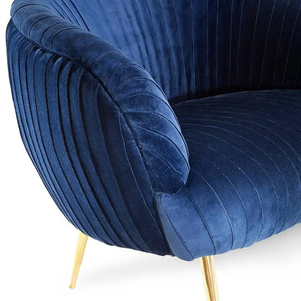 Armchair Diana upholstered in blue soft velvetwith structure in solid wood. Feet in steel in gold finish. Also available in yellow or black soft velvet.