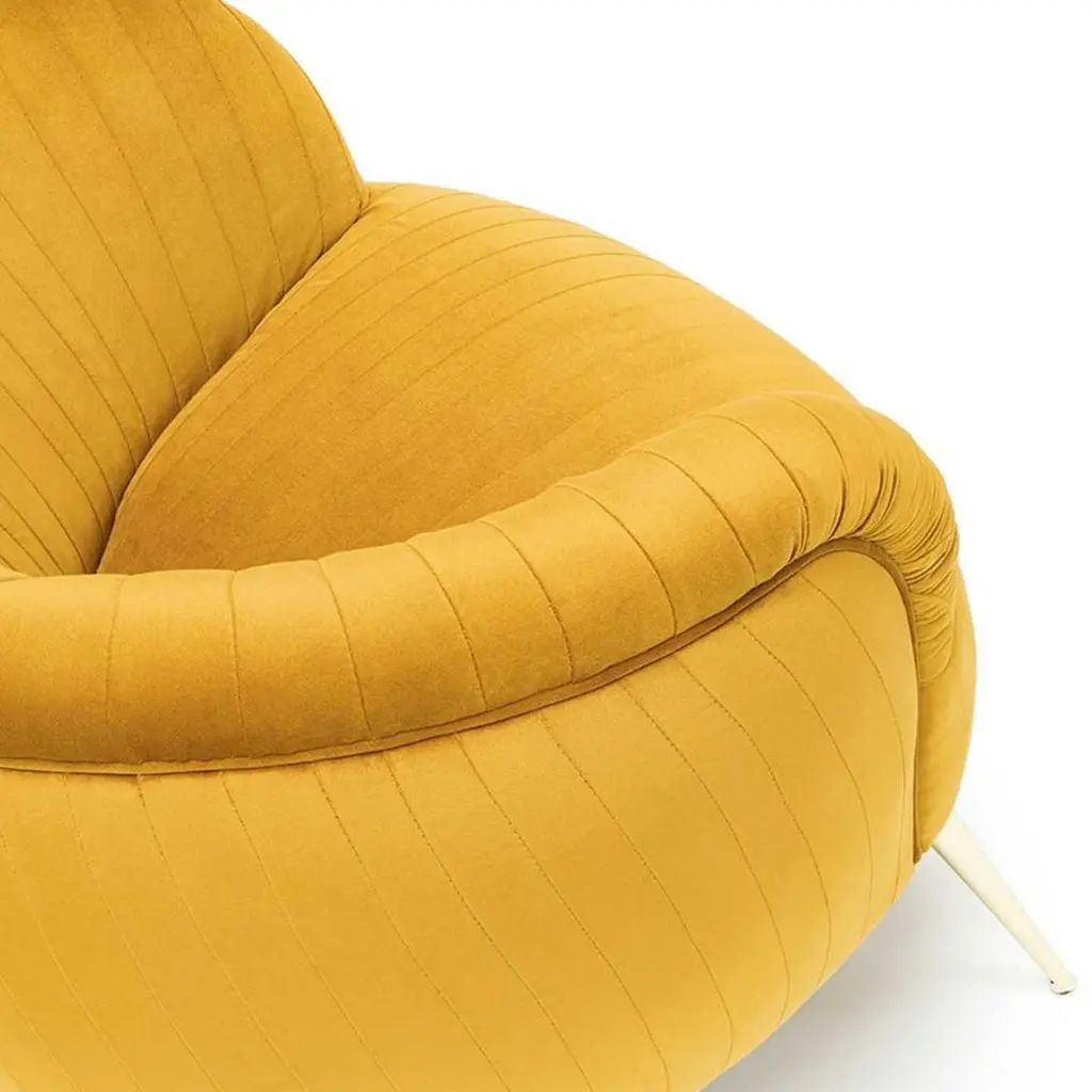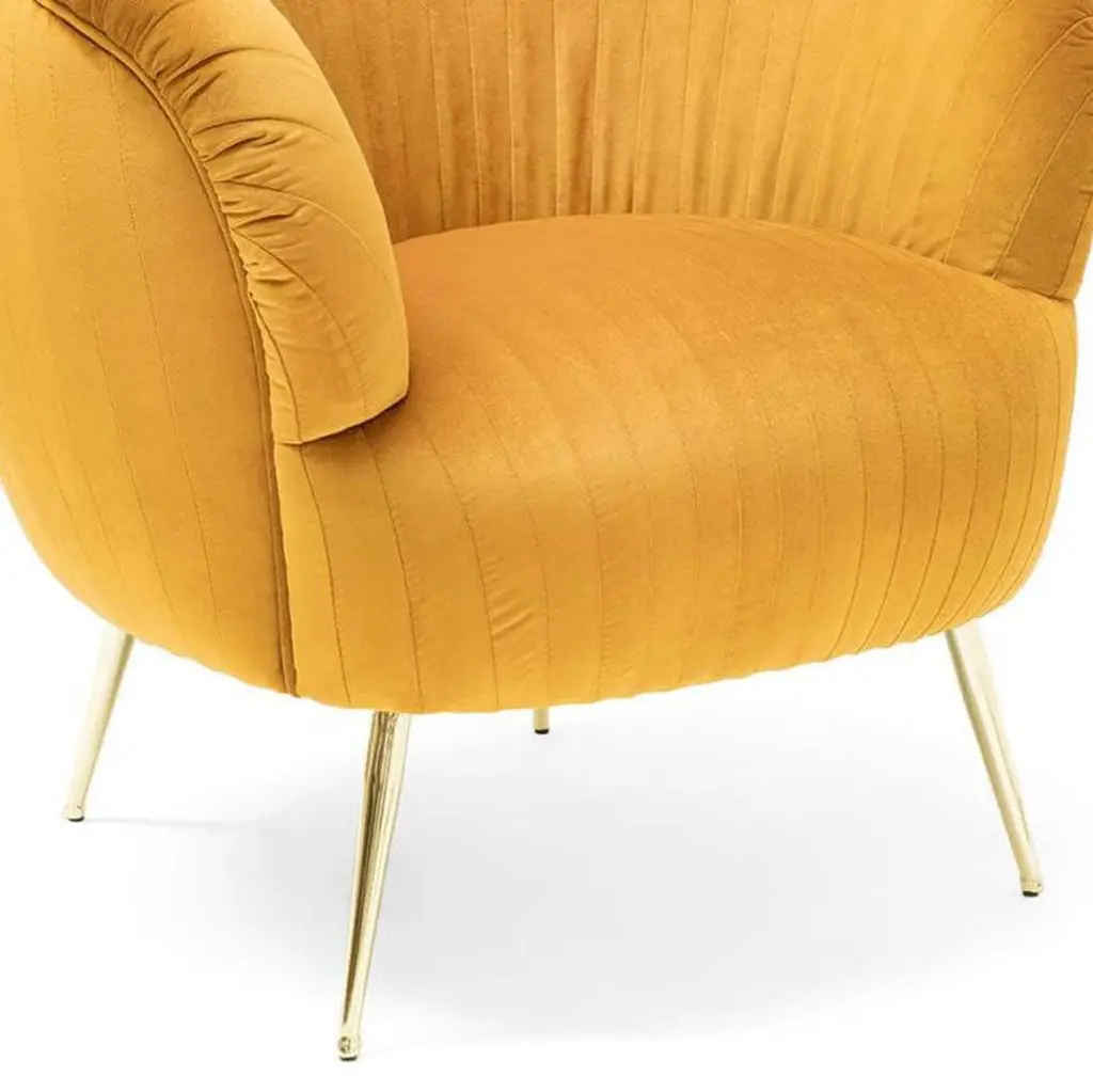 Armchair Diana Honey with structure in solid wood,upholstered and covered with honey soft velvet. Withfeet in steel in gold finish. Also available in other colorson request.