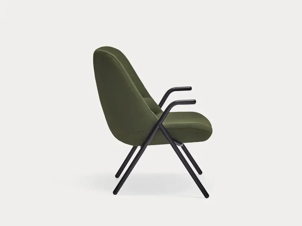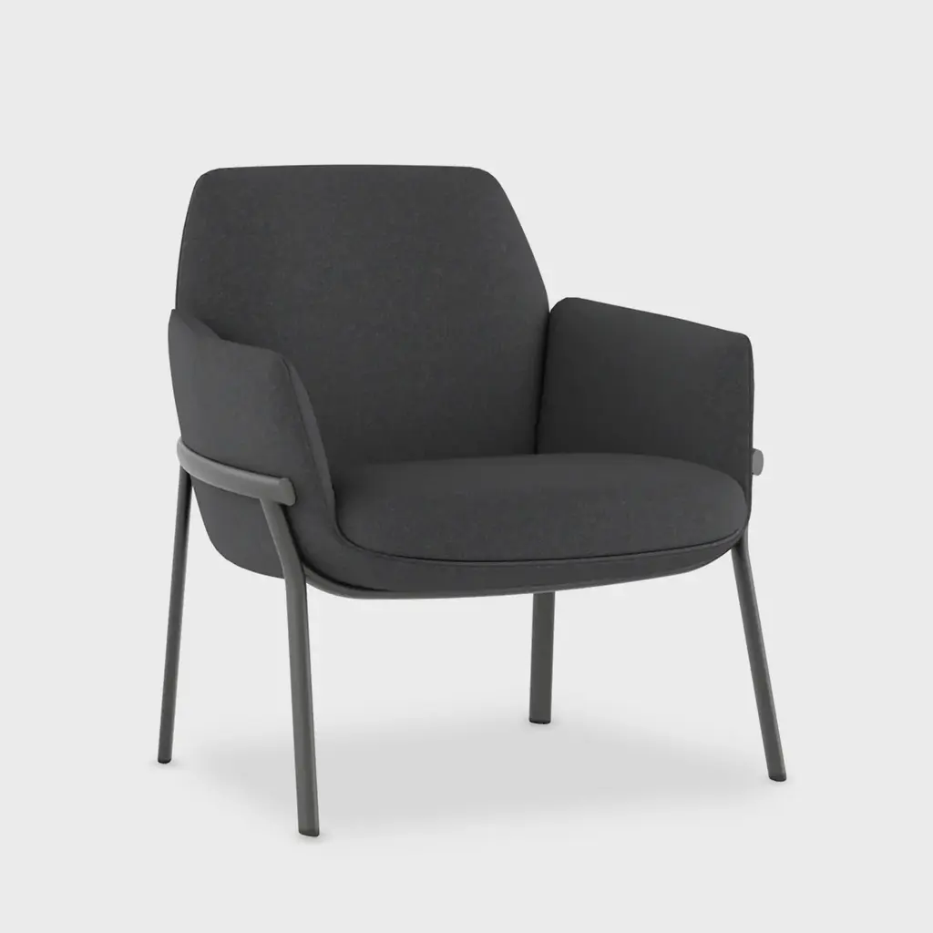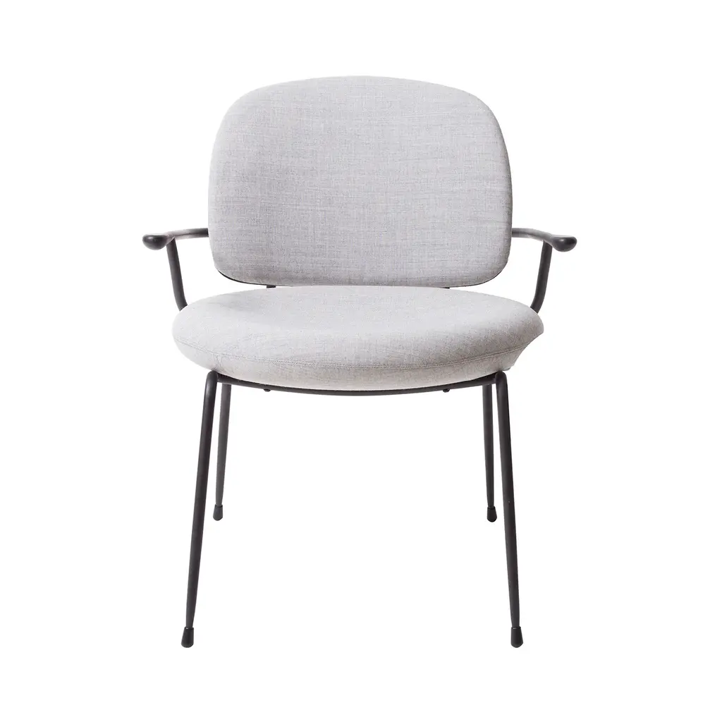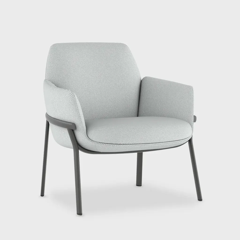 Dins is an uphostered armchair with armrests made of recycled polyester with a 3D relief-like texture, a voluminous tactility and artistic vibe. It is an armchair where two opposite concepts are combined, that come together coexisting in a harmony of proportions. The lightness of the Dins metal structure is fully integrated with the spaciousness of the upholstered body, thus obtaining a collection with a contemporary character and perfectly balanced.Fabric: Rondo by GabrielUpholstered in Rondo by Gabriel, an exclusive upholstery fabric in recycled polyester with an embossed texture, a voluminous feel and a unique look, Dins is an armchair that combines two seemingly opposing concepts, but which come together to coexist in a harmony of proportions. The lightness of the Dins metal frame is fully integrated with the width of the upholstered body, creating a collection that is contemporary in character and perfectly balanced.