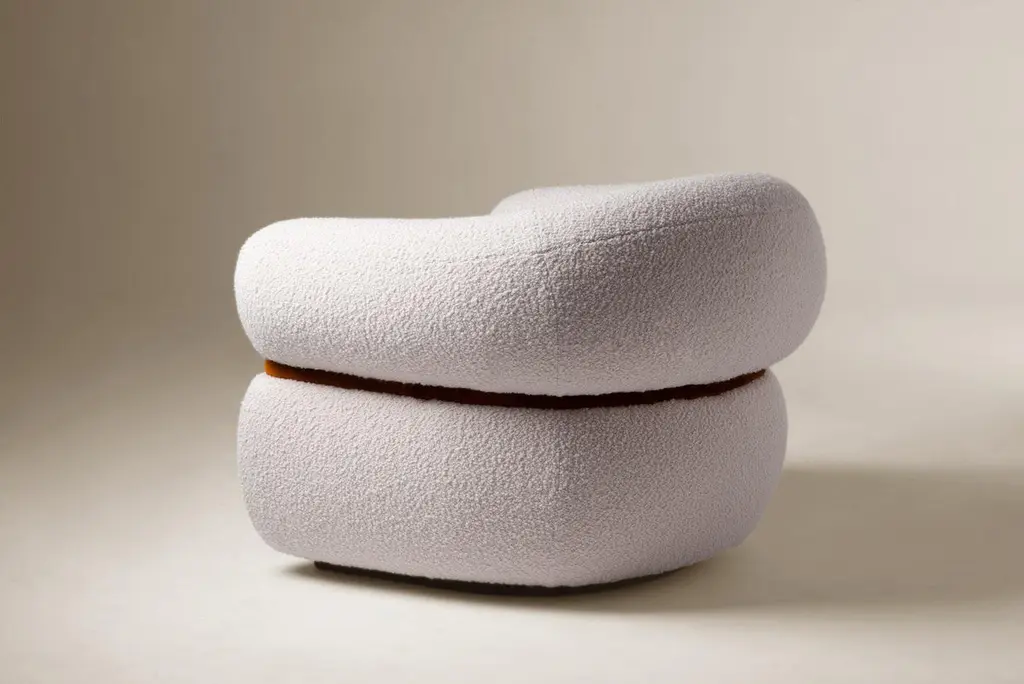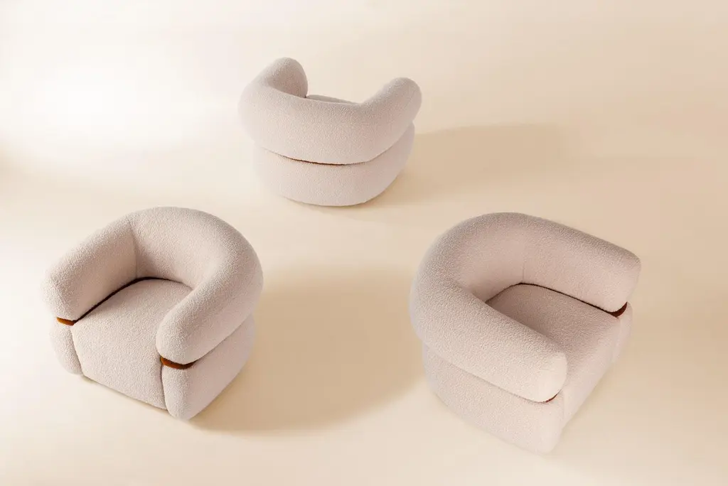 Like a warm embrace, Malibu Lounge Armchair welcomes you to stay within and relax. An elevated homage to the golden age of midcentury design and organic architecture, it radiates through its unusual proportions and strong curves with softness and Fine detailing resulting in a must-have piece. The Mid-Century Modern and Organic Modern inspirations are fused together elegantly in this statement piece of furniture.Its rich Bouclé fabric and Cotton Velvet detailing contribute to the characteristic and unique character of this lounge armchair, while adding to its comfort.Made to Order. If you are planning on ordering an upholstery item with COM upholstery, please follow these instructions: - Let us know that you are shipping fabric to us prior to shipping, as we will need you to fill a form;- All fabrics must be shipped to the company DOOQ, LDA, and no other name;- Send us the fabric invoice so we can present it to portuguese customs so the fabric can be released;- Our company must appear on the fabric invoice as "SHIP TO" only, not as "BILL TO" or "SOLD TO"- Our company has the right to refuse acceptance of fabric/leather if the shipment of such material ignores the requirements written above;For sales with delivery address within European territories, VAT will be charged additionally to the stated price.