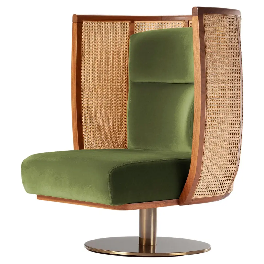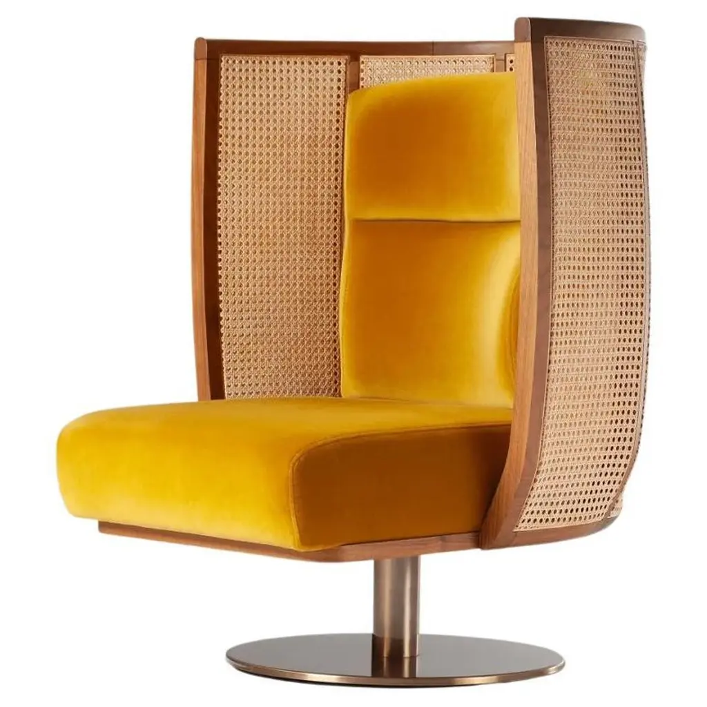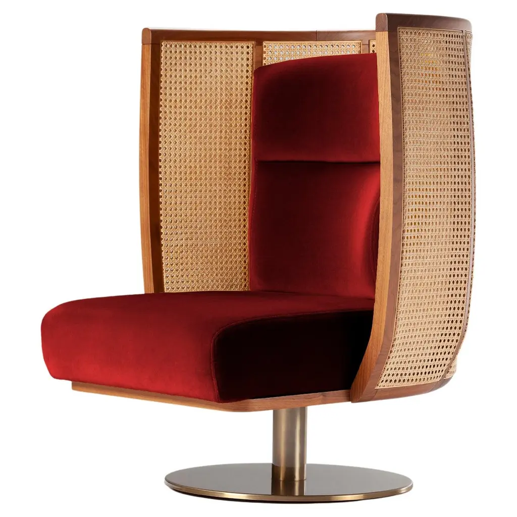 Dooq Swivel Egoísta Armchair With Solid Walnut, Rattan And Orange Velvet