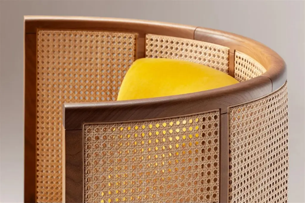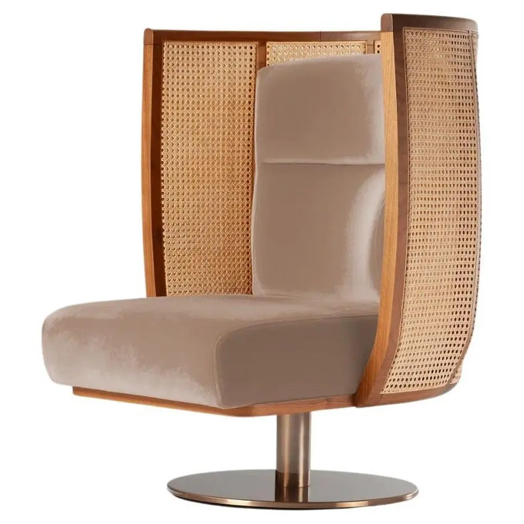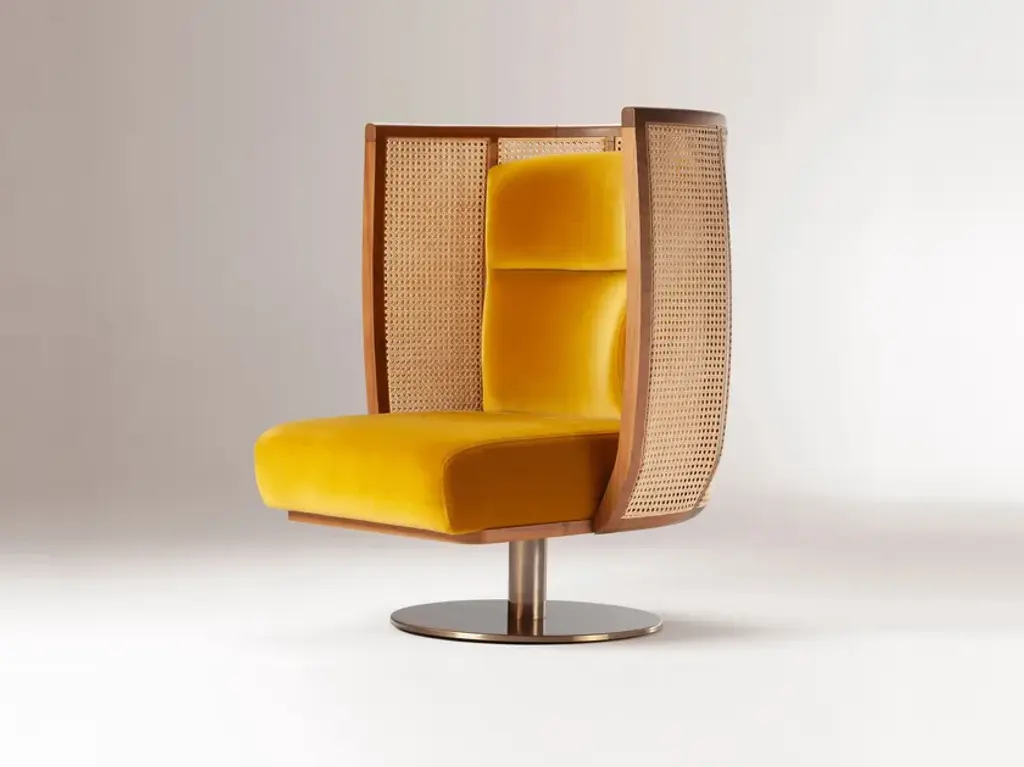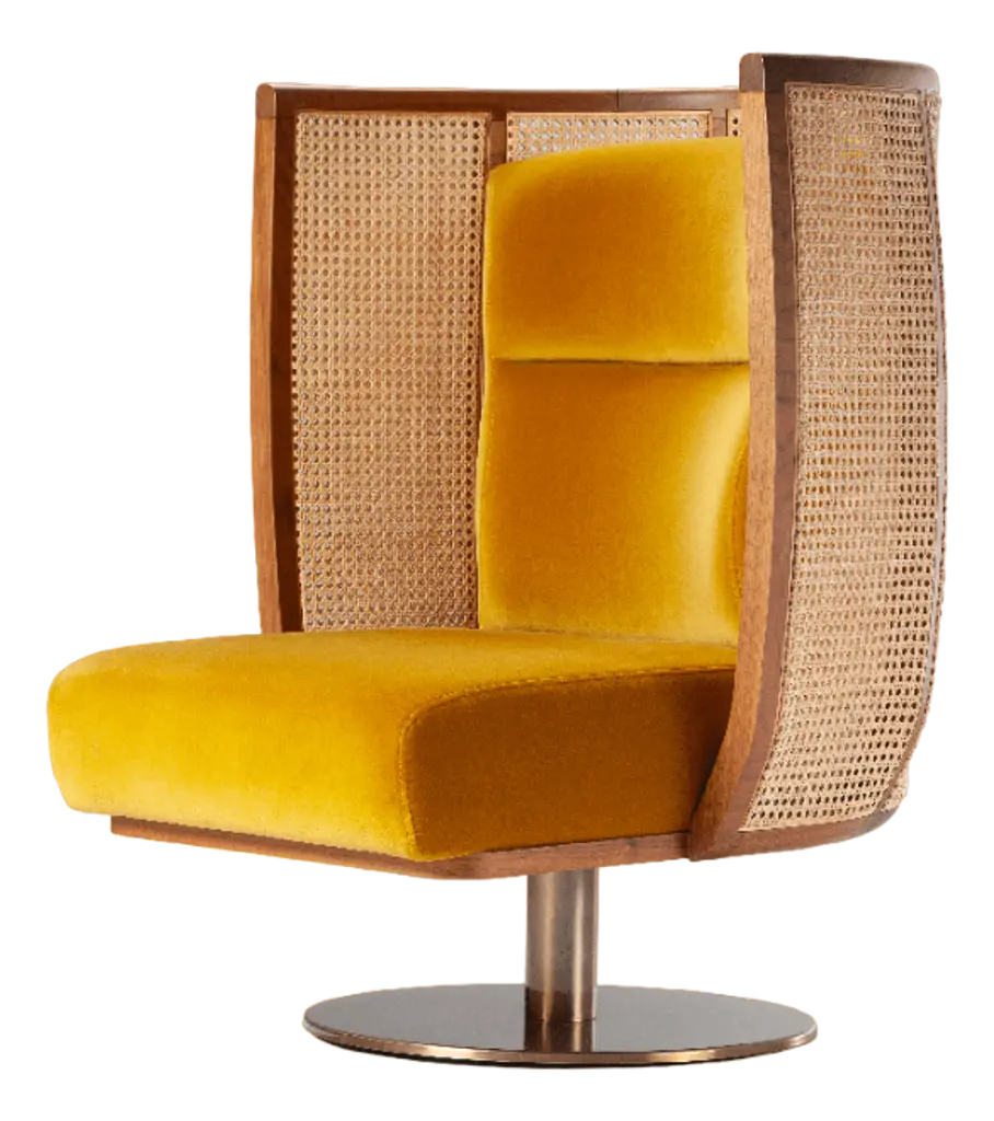 Dooq Swivel Egoísta Armchair With Solid Walnut, Rattan And Orange Velvet