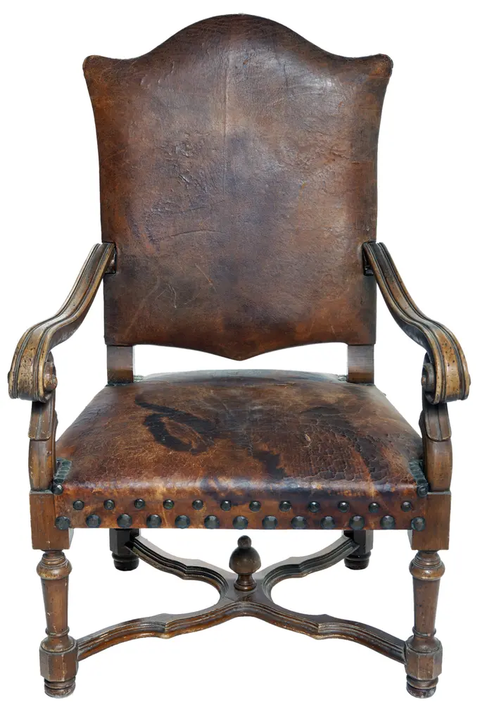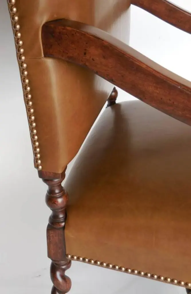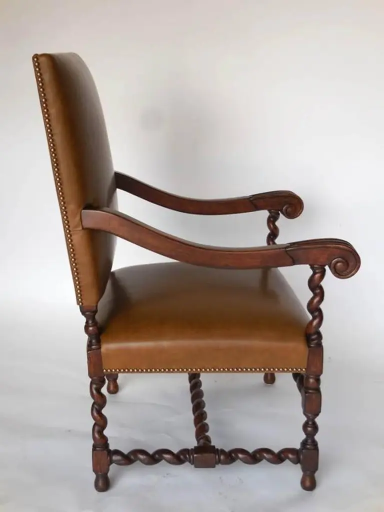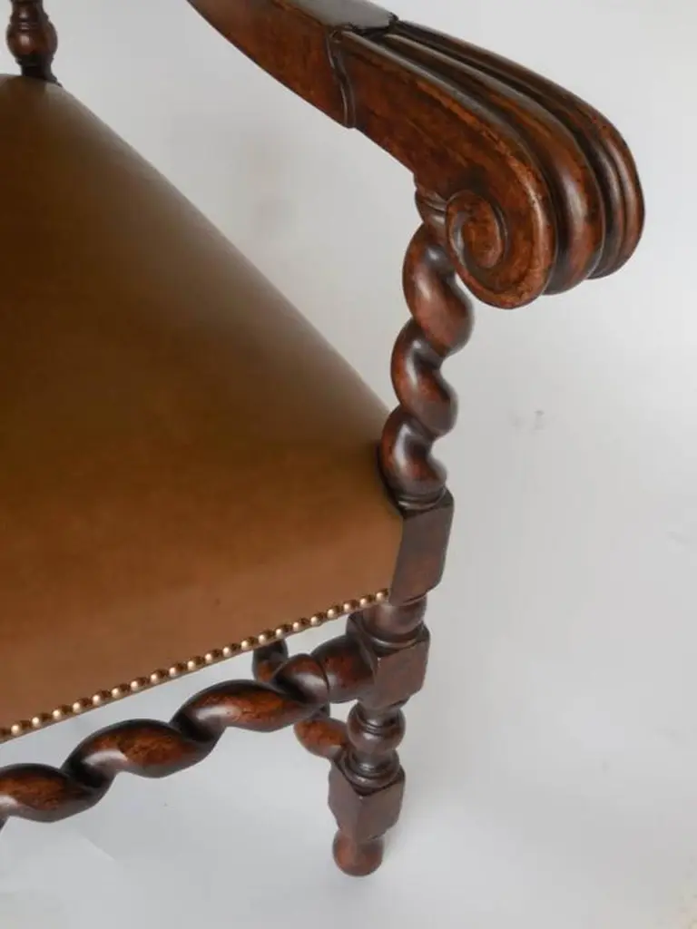 Dos Gallos Custom Walnut And Leather Spiral Twist Armchair With Scrolled Arms