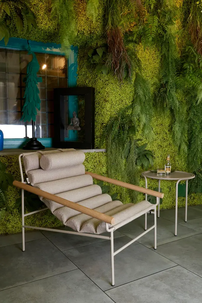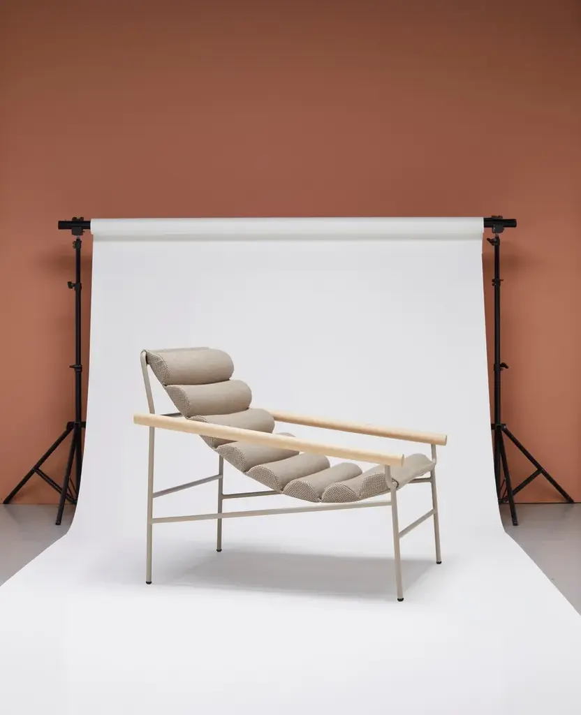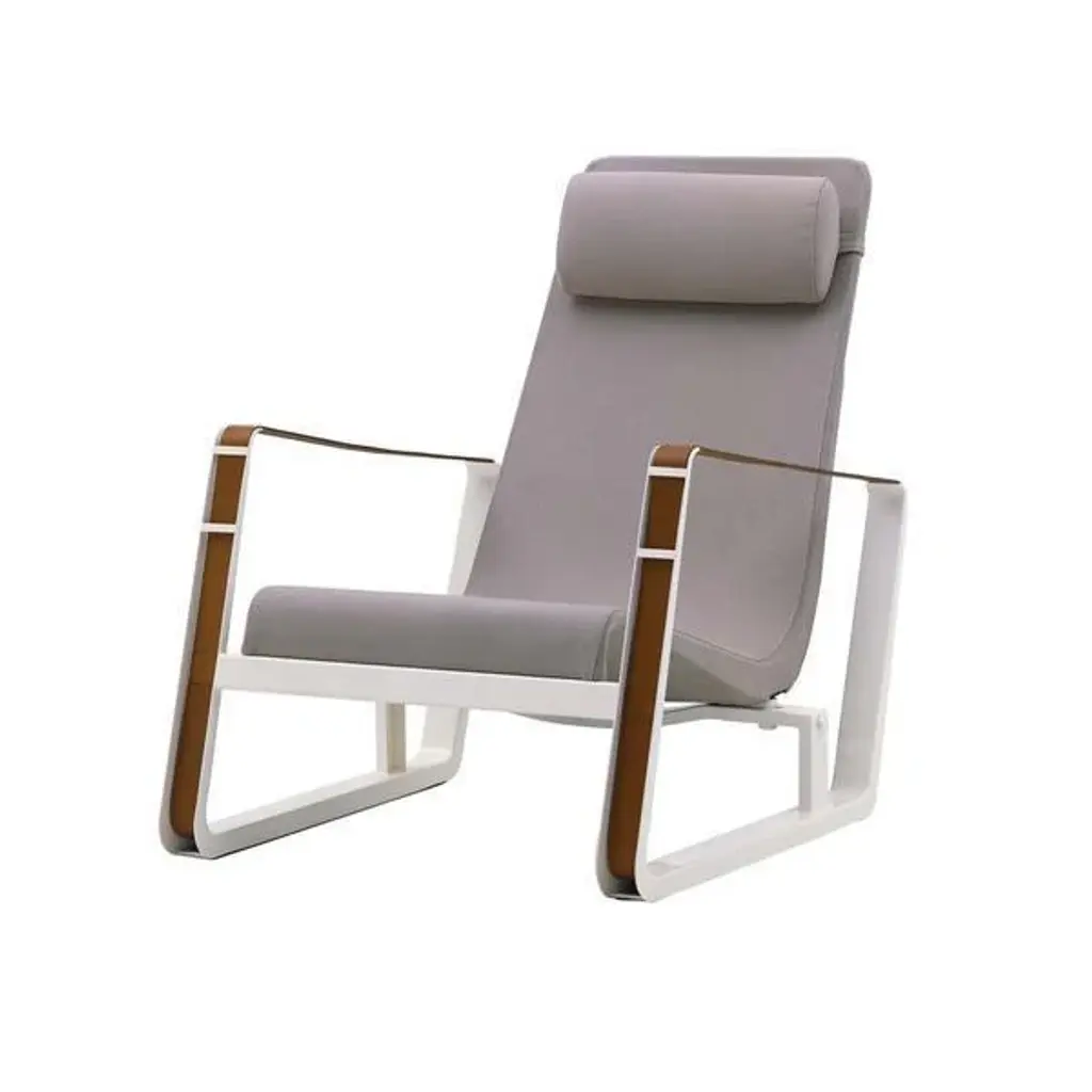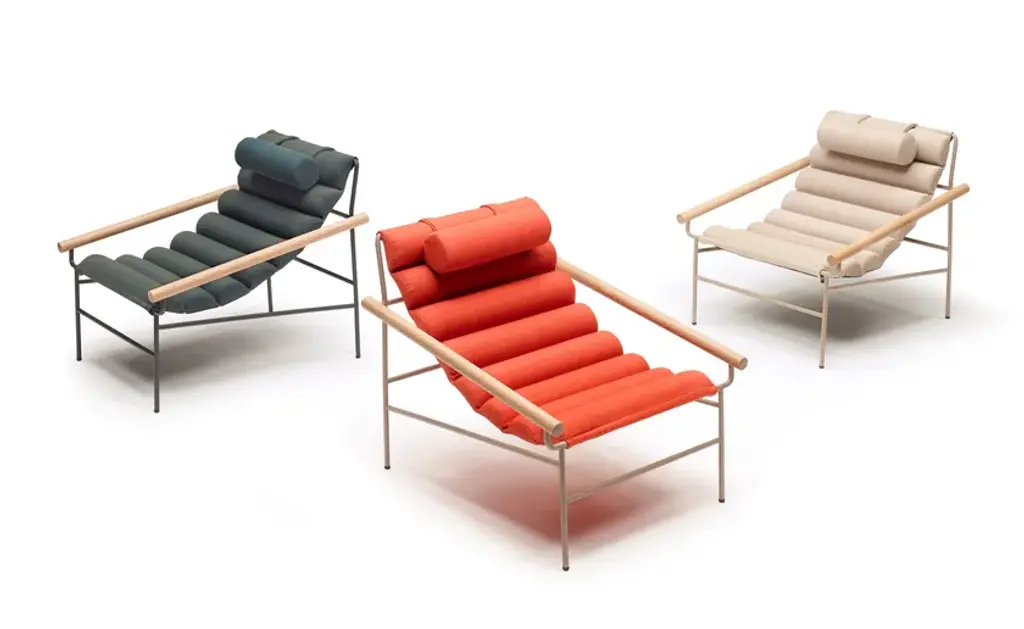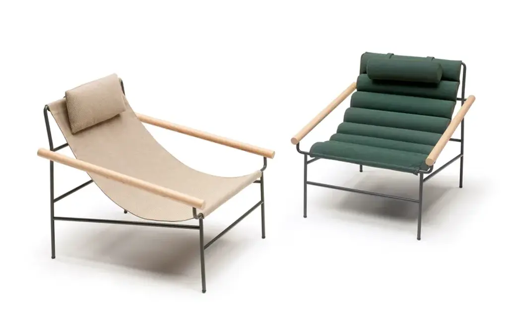 The new DRESS_CODE armchair is inspired by the canons of haute couture, playing with the combinations of colours between structure and seat, with the indoor and outdoor fabrics patterns, and with their upholstery: in addition to the smooth and flat fabric version, there is a quilted version in big squares, and a padded, wave-shaped version. The quilting and padding are both an aesthetic element and a source of greater comfort.A headrest cushion is available as an accessory, also with a fabric cover.